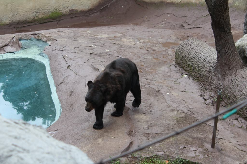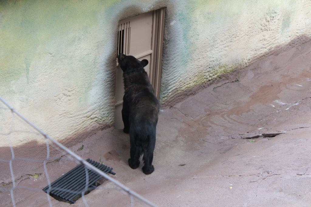 But getting here was no easy feat. Not having a good feel for exactly how far it was, I walked all the way across downtown Gatlinburg, from the hotel to (the lower terminus of the aerial tram to) Ober Gatlinburg. Fatigue, heat, and a shortage of shady places to sit made this walk quite difficult. When I stepped onto the aerial tram and found that it was standing room only, I was seriously concerned that I wouldn’t be able to stay upright for the 10-minute duration of the ride. As it turns out, I did OK holding onto a strap and leaning against a rail, but I wasn’t about to try any photography. Now, getting back to the bears…