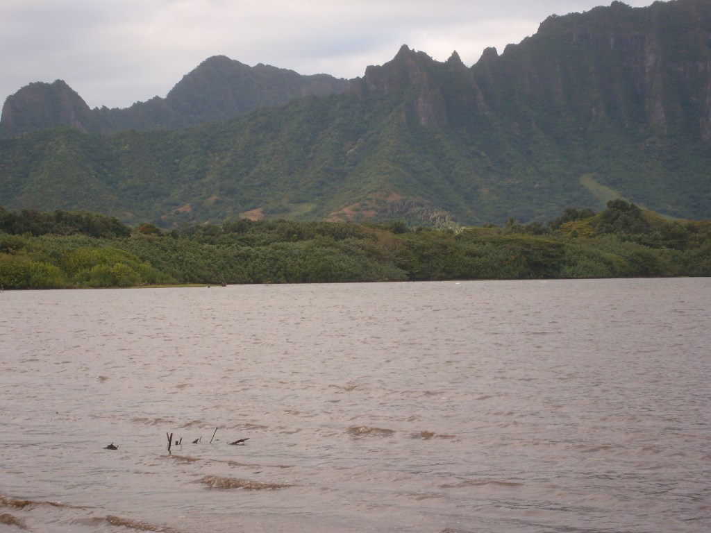 For my first full day on Oahu, I headed to the southeast corner of the island, then drove north along the coast, stopping at a few points of interest along the way. My first stop was Waimanalo Beach. This is a large and scenic beach. The water and air temperatures were wonderful, and the water’s viscosity was just right! Near the parking lot, this beach was rather crowded. Fortunately, the beach is four miles long, so if you wanna do some walking, you can find uncrowded stretches. Once I found an uncrowded area, I played in the sand and water for awhile, then snapped the pictures below before moving on.