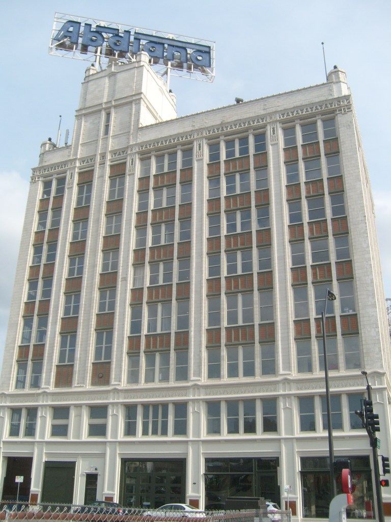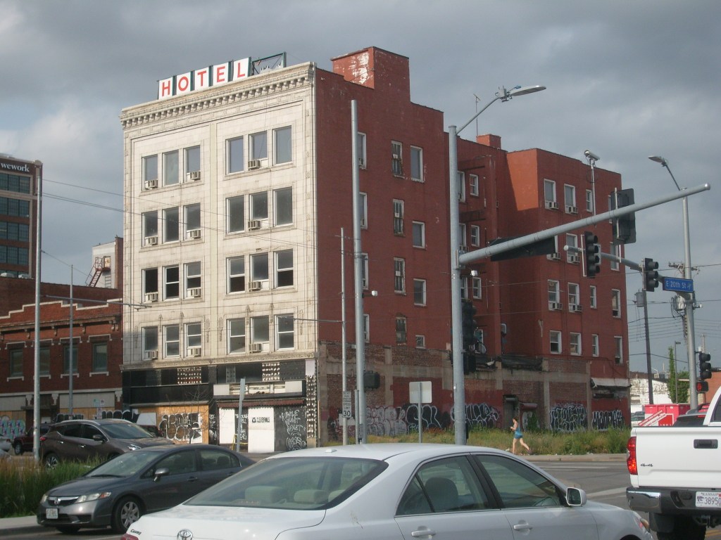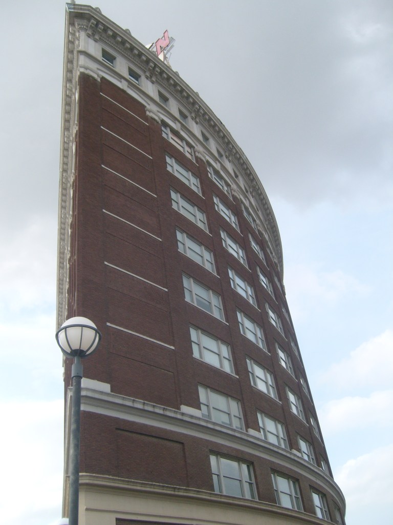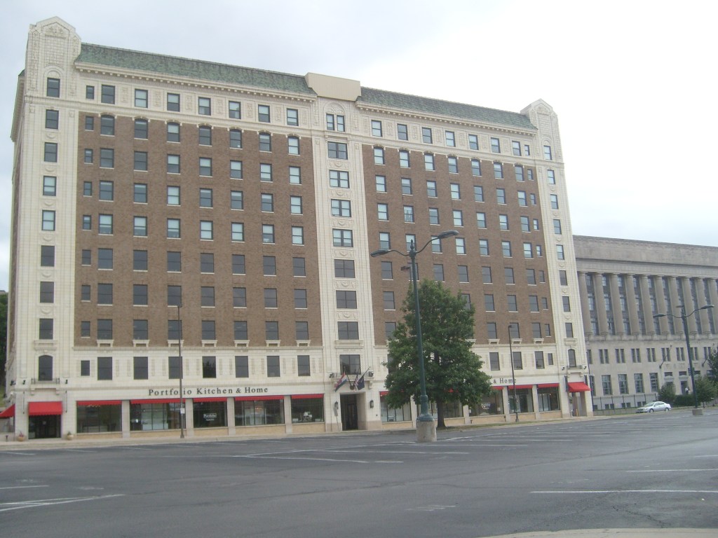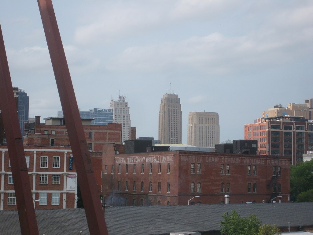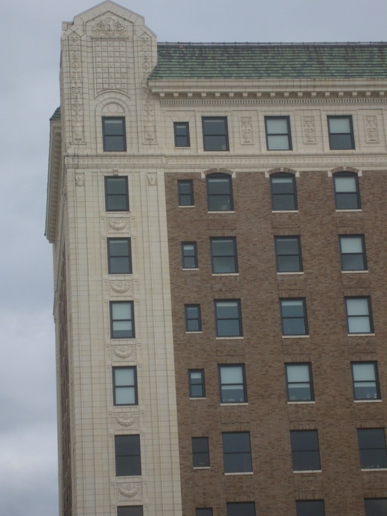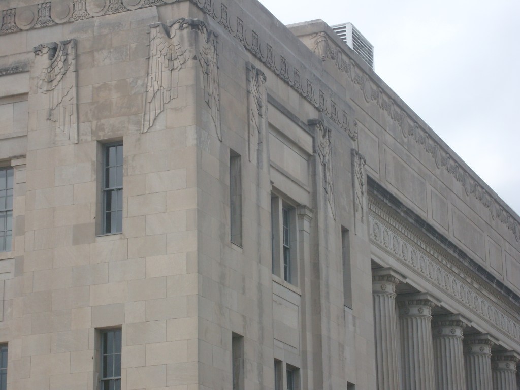 I thought the building on stilts was pretty cool, and not just for the stilts.Just ornate enough to be interestingI regret that this was as close as I got to these skyscrapers.The tallest building in this picture is known as the Firestone Building.Detail on the Firestone BuildingFirestone BuildingFirestone BuildingDetail on the Firestone BuildingThis is NOT where I stayed.The freight depot is near Union Station, with many old warehouses close by.Looking uphill at downtownThis building houses Portfolio Kitchen & Home’s flagship storeDetail on Portfolio Kitchen & Home’s flagship storeThis was built as a United States Post Office when mail went by train.This thing is purty fer a Post Office.Eagle friezes near top of old Post OfficeDetail of old Post Office buildingYou know what, building? I like you!You can’t tell from this angle, but the Western Auto building……is a weirdly shaped building.Detail of Western Auto building