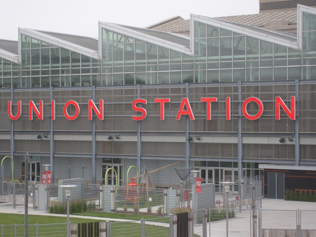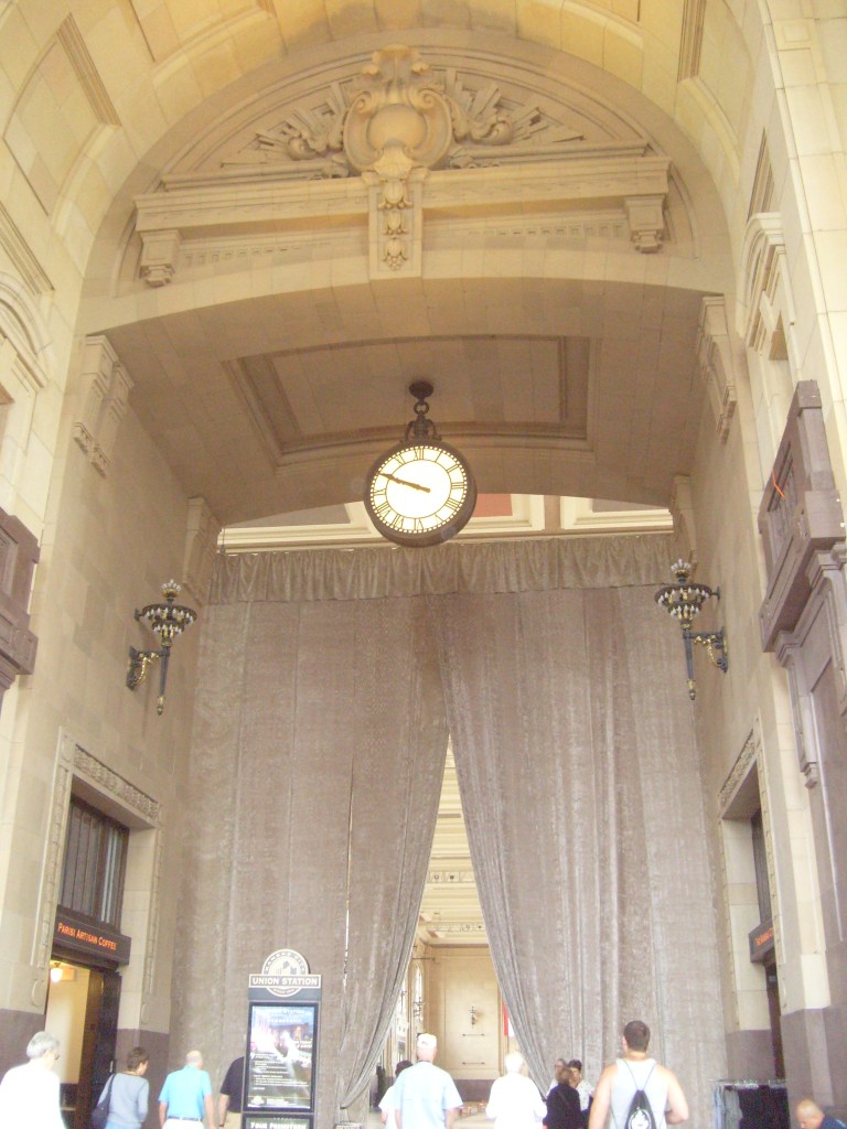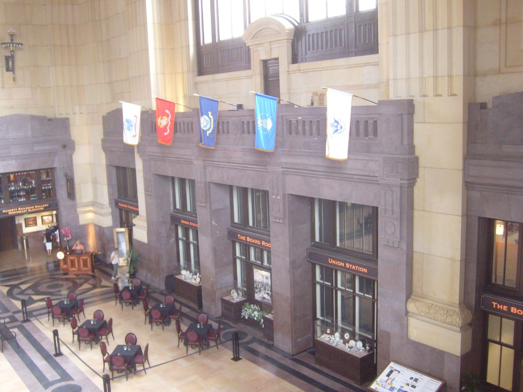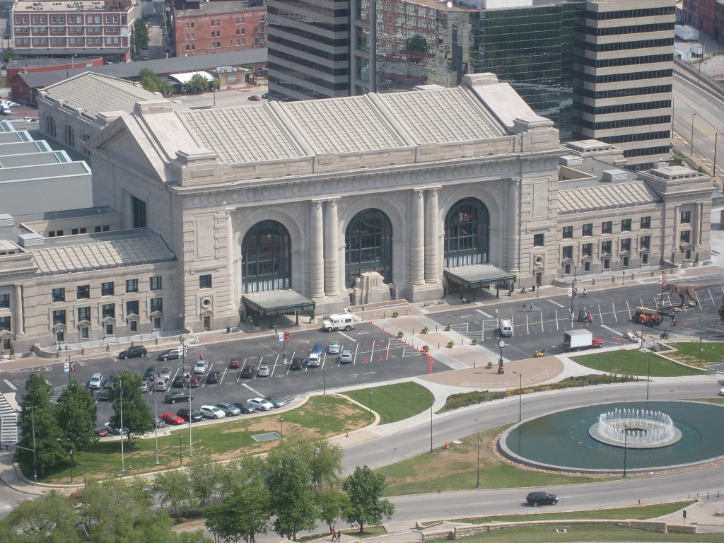 Part of the reason I wanted to vacation in Missouri is that I am an architecture fan, and both of the state’s major cities have splendid historic railroad stations, each of which has been painstakingly restored in recent years. Wow. That may be the first time I’ve ever typed the word “splendid”. At any rate (except 3.5 joules/furlong), let’s start with Kansas City’s Union Station, shall we?
