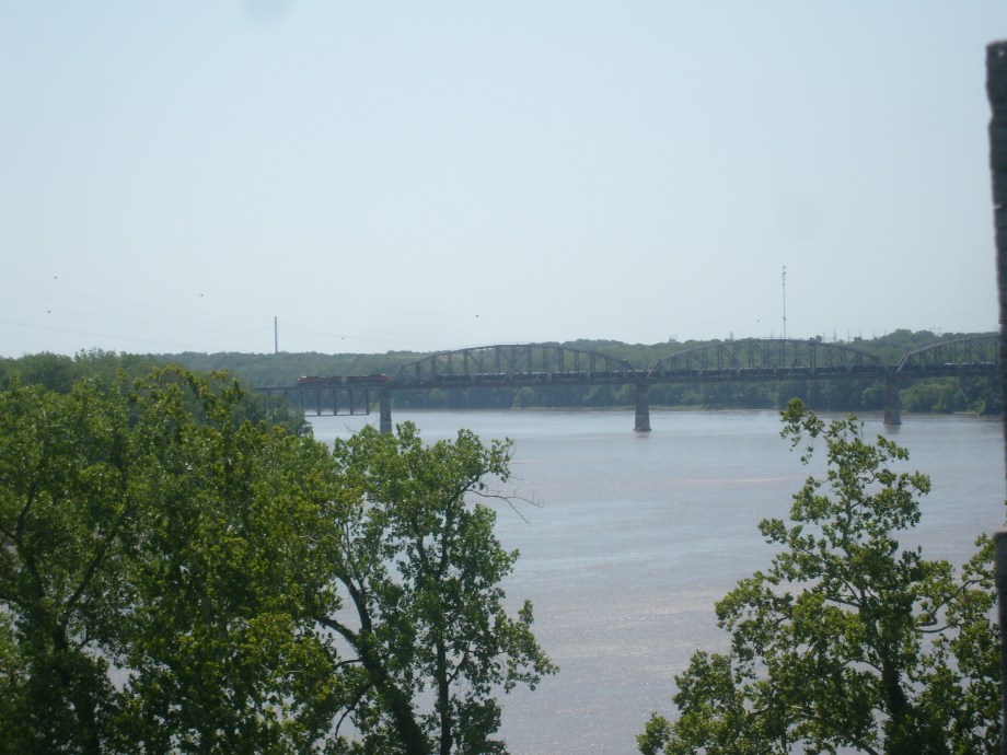 As you may have noticed in the last of the above pics, there is an impressive railroad bridge near Fort Osage. The photo below shows this bridge being used by a Burlington Northern Santa Fe train. According to Bridgehunter.com, this bridge was completed in 1915, and is over three quarters of a mile long.