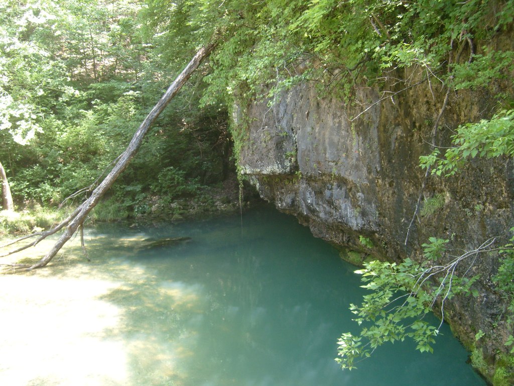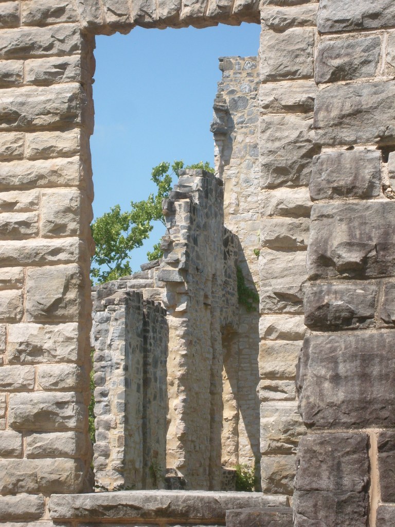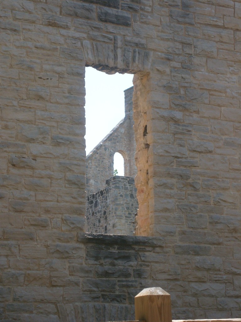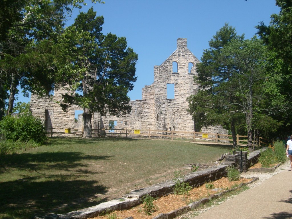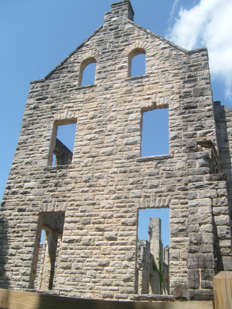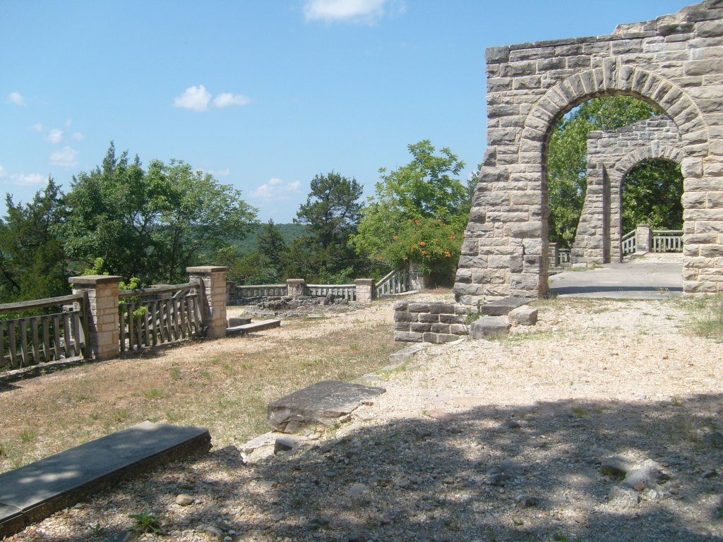 The following day I went to Ha Ha Tonka State Park. Yes, that’s its real name. This is a park with (at least) two distinct environs: low/wet and high/dry. I started with the high and dry, specifically the top of a bluff overlooking a small arm of the Lake of the Ozarks. The main draw here is the Ha Ha Tonka Castle Ruins. Completed in 1922, this “Castle” was actually a European-style mansion built for the family of a successful Kansas City businessman. In 1942, the mansion was gutted by a fire. All that remains of the mansion are its massive stone walls…