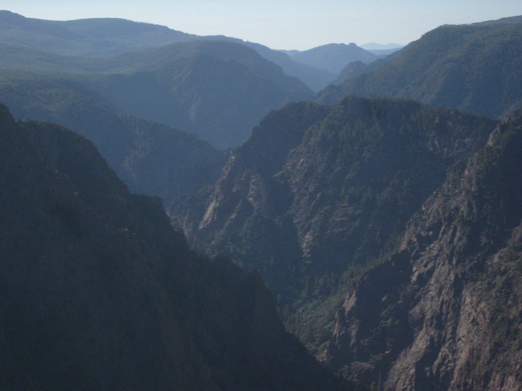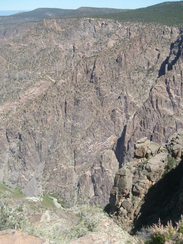 Near the main entrance to the National Park, looking upstream (east-ish)A perky little lizardThe rock striata in some parts of Black Canyon are completely verticalThe area on the right may be the gentlest slope found in this steep-n-deep canyon.Alvin, Simon, or Theodore?Looking across Black Canyon to the less-visited north rim and its unpaved roadNear the end of the National Park’s main road, looking downstream (west-ish)The guy at the upper left gives some much needed sense of scale.