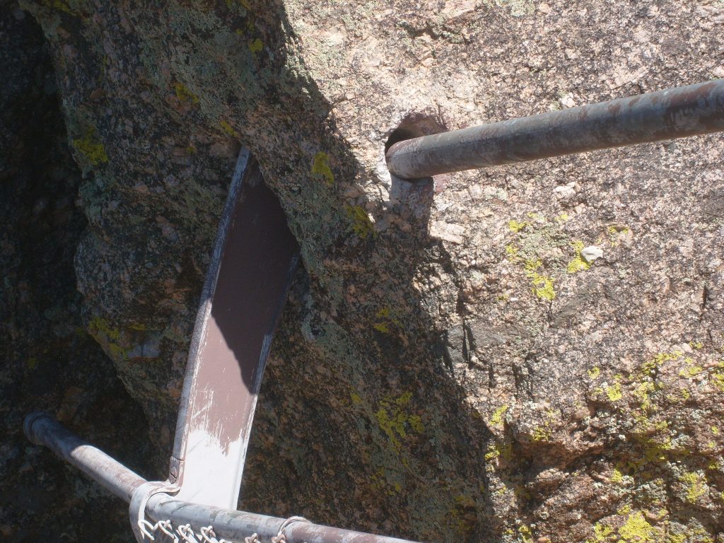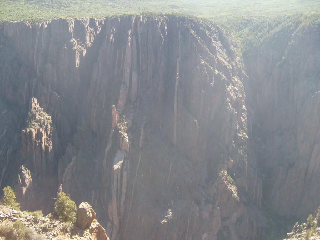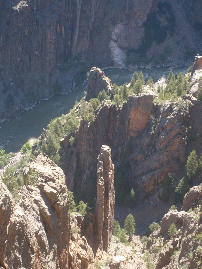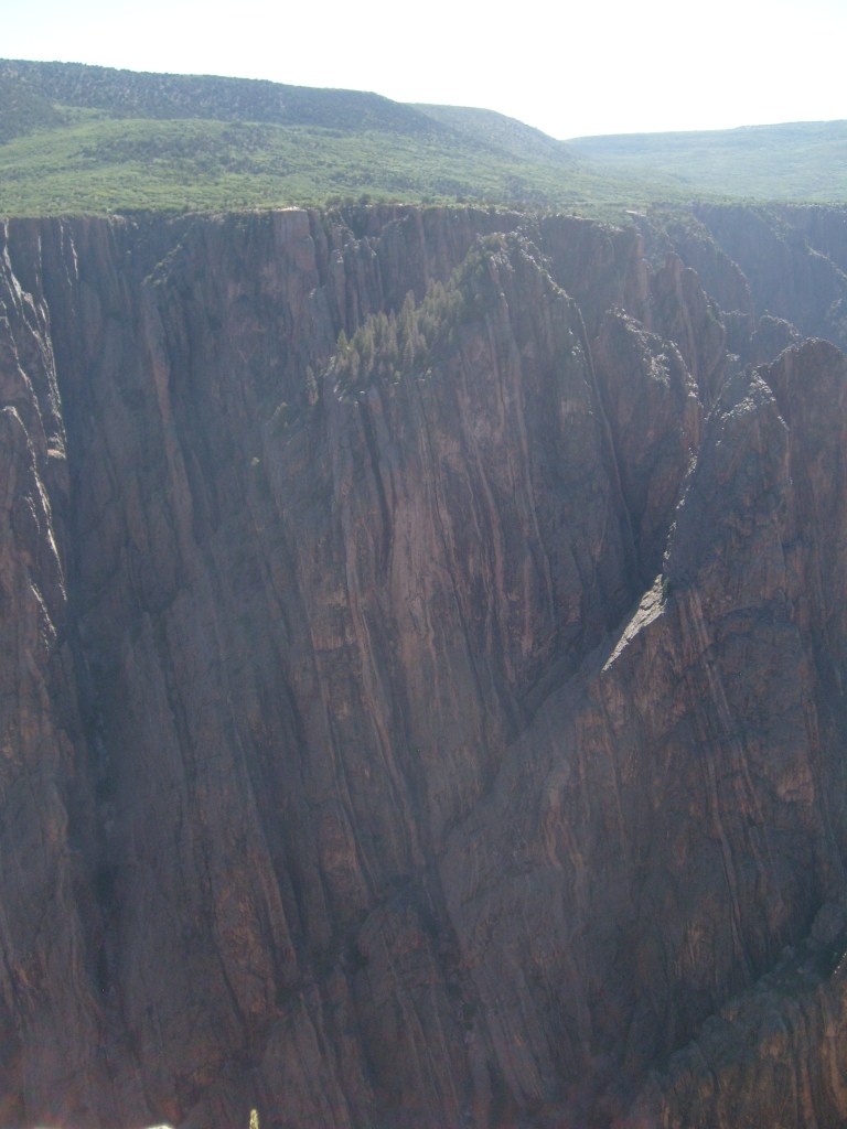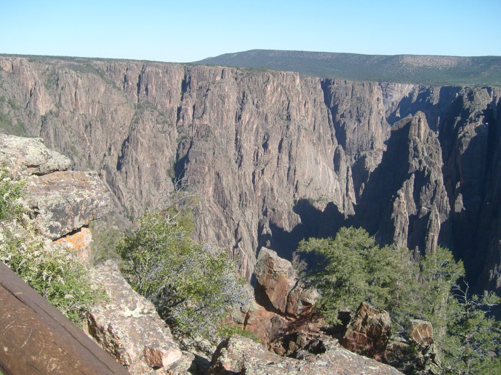 Painted Wall is awe-inspiring, in beauty & size, but size is hard to gauge in this shot……so I rotated the camera, hoping the river at the base would give a sense of scale……if you’re still not awe-stricken by the size of Painted Wall, then read this sign. Rapids on the Gunnison River, nearly half a mile below the photographerNever seen a railing installed quite like thisDetail of the Painted Wall, Black Canyon of the Gunnison National Park, Colorado