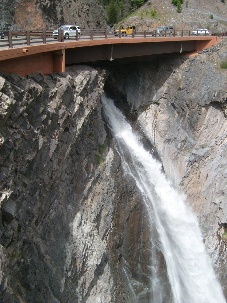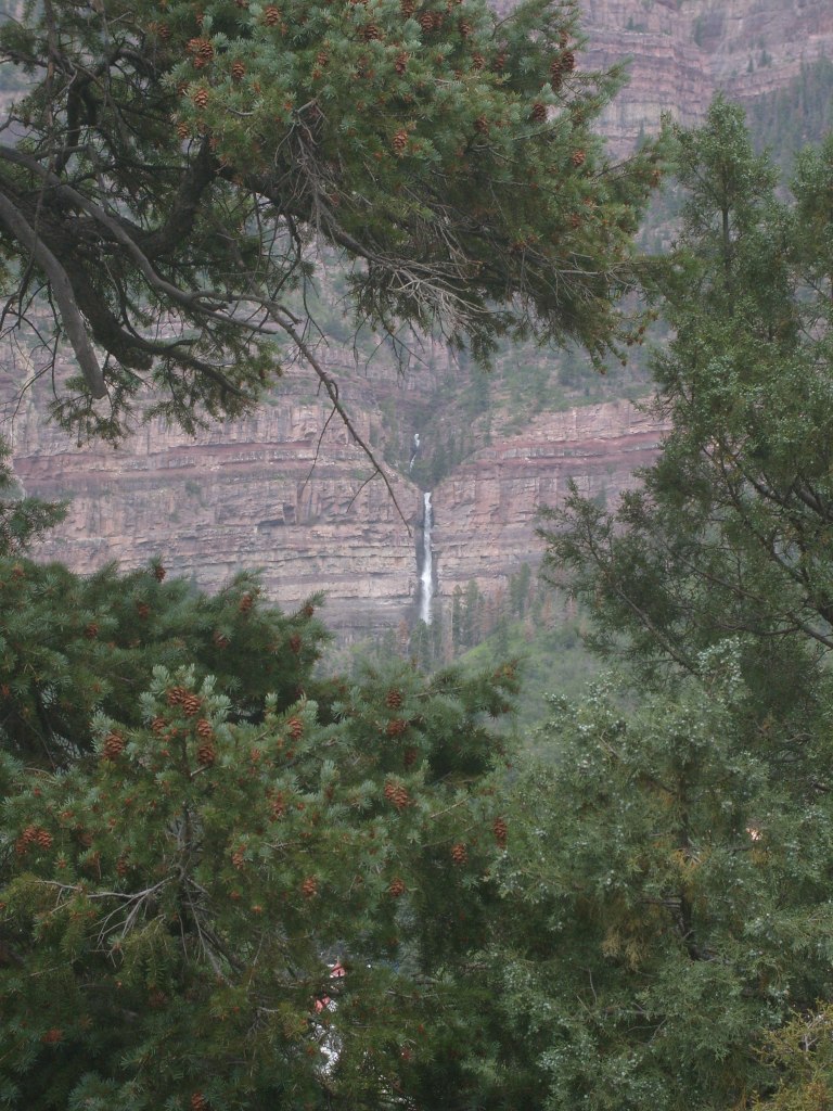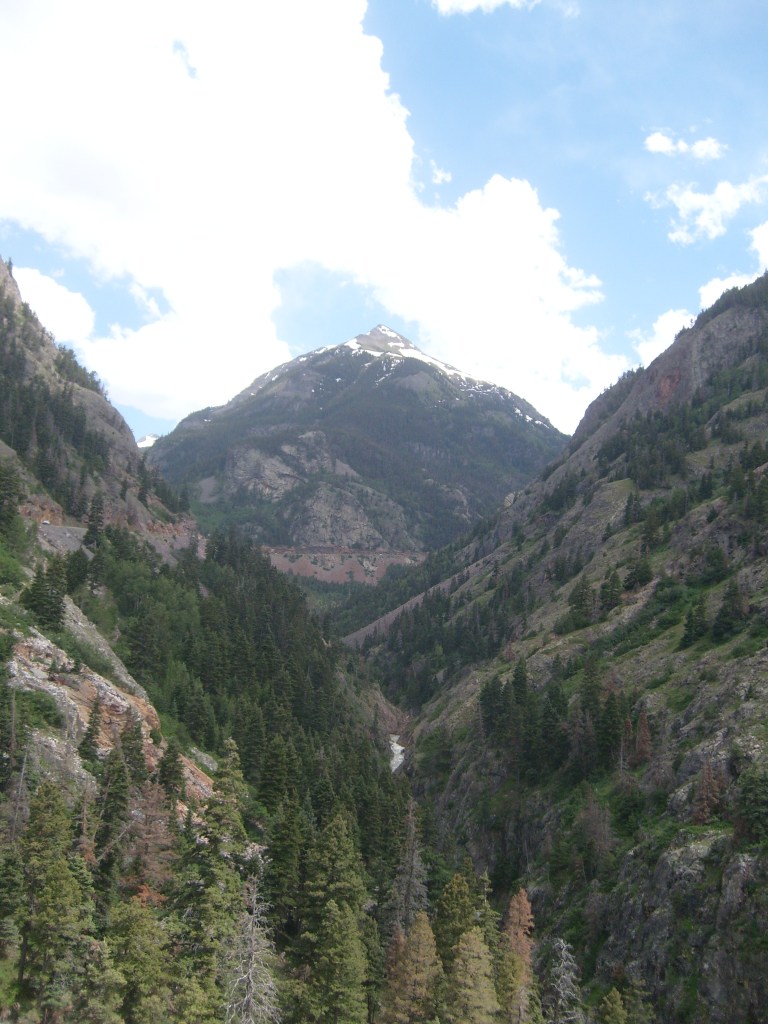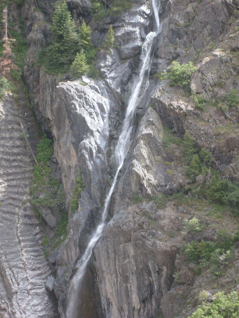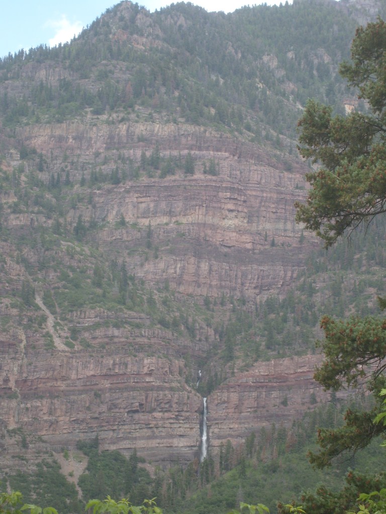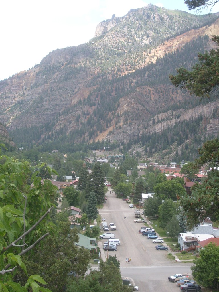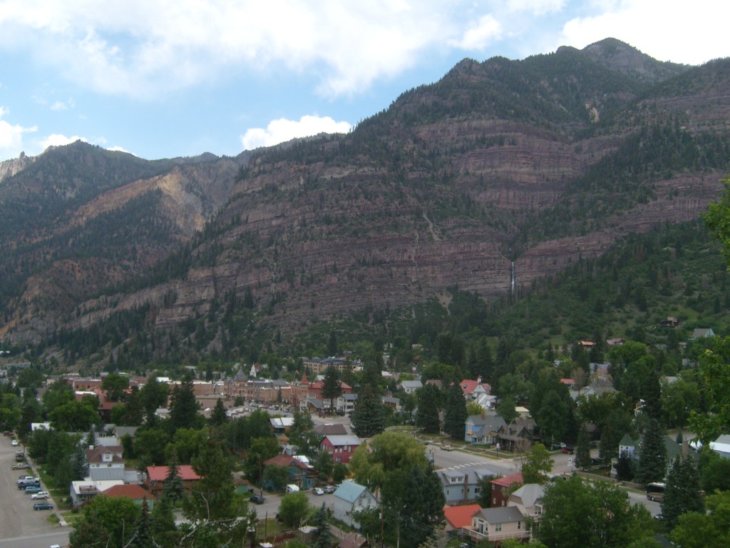 OK, I lied. You can actually see the Million Dollar Highway in this pic.Waterfall across the canyon from the Million Dollar HighwayI was fascinated by the rippled rock to the left of the waterfall.The only place I know of where you can drive your car directly over a waterfallRainbow formed by waterfall mistOne of the small streams that tumbles into the town of Ouray, ColoradoLooking out over Ouray, ColoradoLooks like some gold mining happened here back in the day.One of the small streams that tumbles into the town of Ouray, ColoradoOne of the small streams that tumbles into the town of Ouray, ColoradoLooking out over Ouray, Colorado