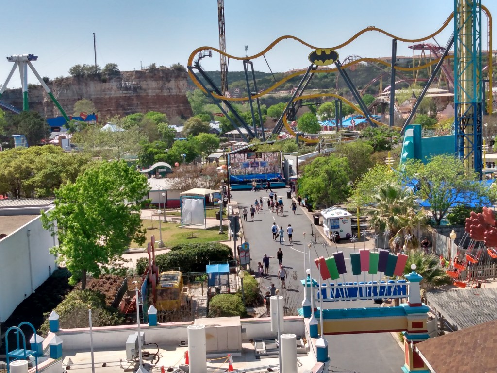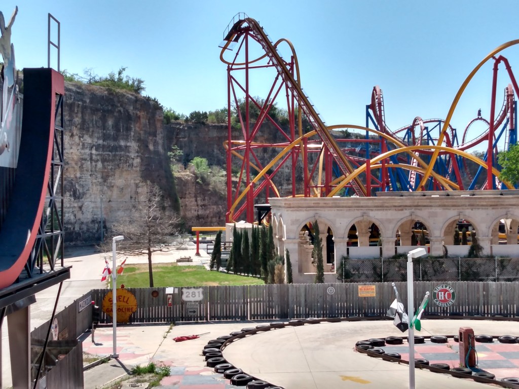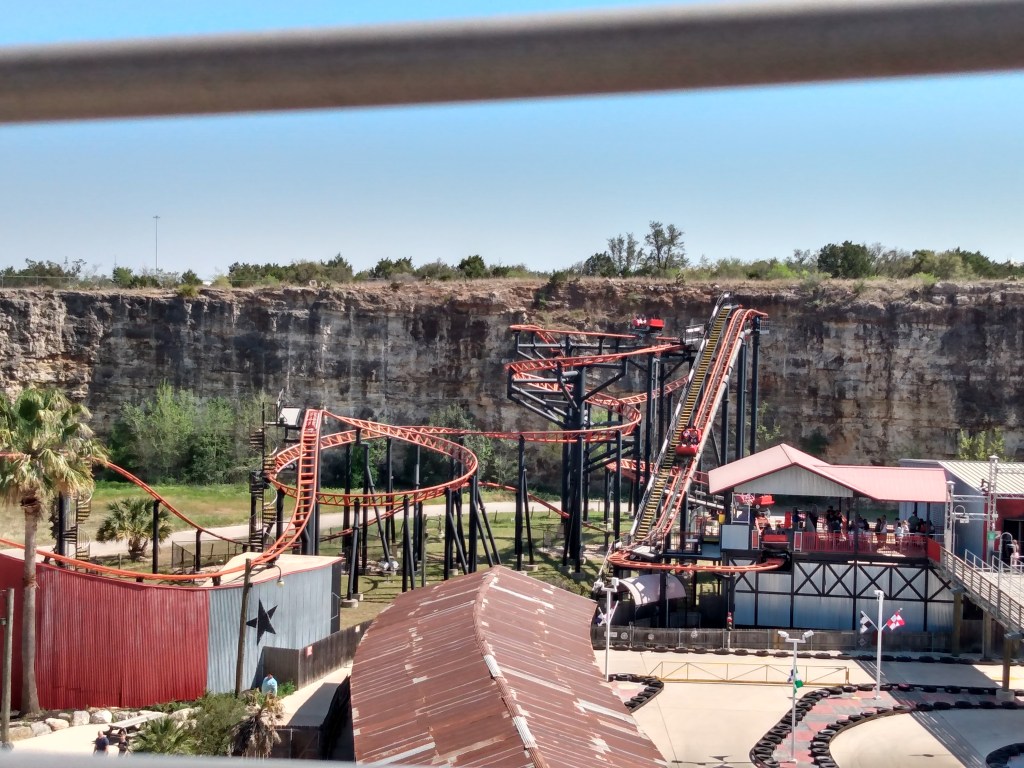 Today, I went to Six Flags Fiesta Texas (known to roller coaster geeks as SFFT). SFFT is the last park I have left on my roller coaster bucket list. What makes this particular Six Flags park special is that it was built inside a quarry! I tried to get some pics to illustrate…