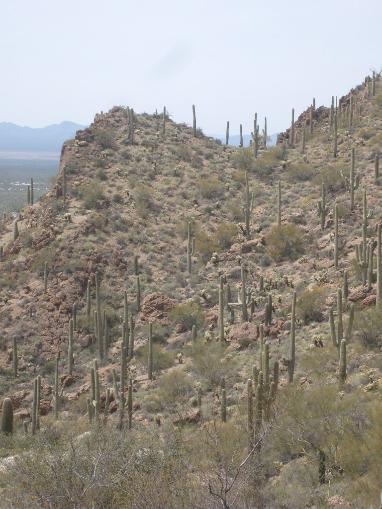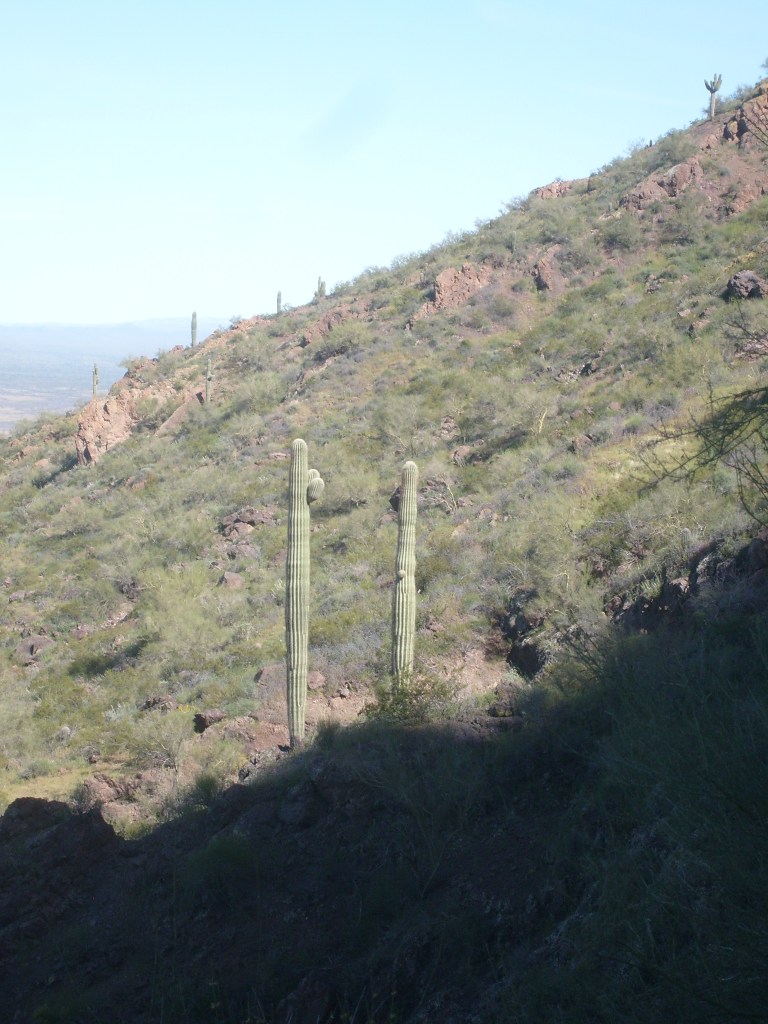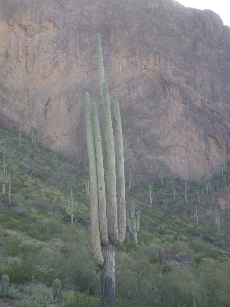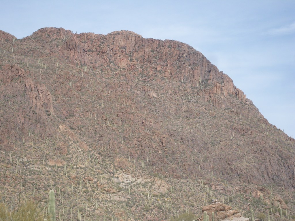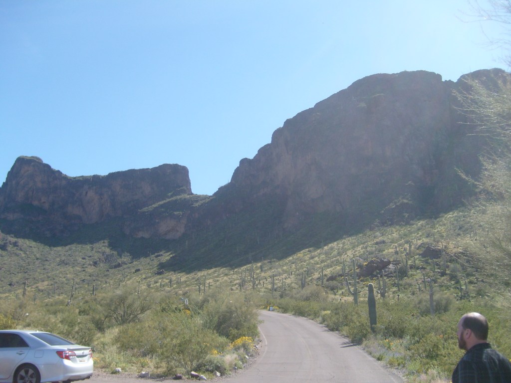 For the first few days of this trip, I was shown around southeastern Arizona by a pair of old friends who are familiar with the area. They picked me up at the Phoenix (FEE-nicks) airport, and drove me to Tucson (TOO-sawn). As we drove across this flat expanse of desert, a big damn rock appeared right next to the Interstate. This big damn rock is Picacho Peak, the centerpiece of the very popular Picacho Peak State Park. (Not to be confused with Pokemon Prefecture Park’s Pikachu Peak – Japan’s most alliterative tourist attraction.) We stopped and did a little bit of impromptu hiking. Here’s some of what we saw…