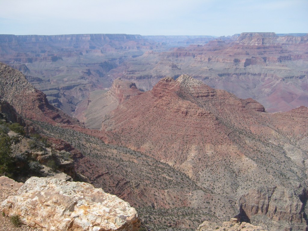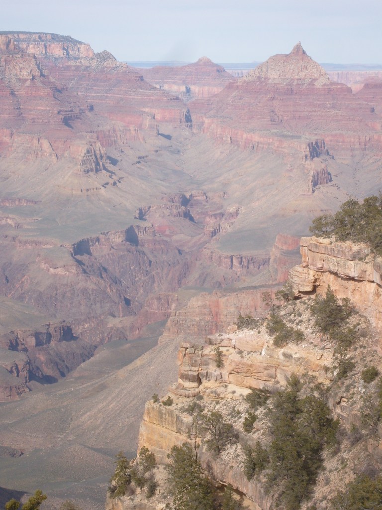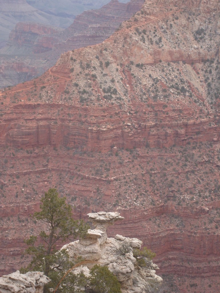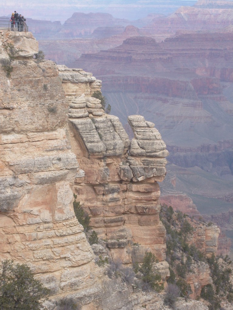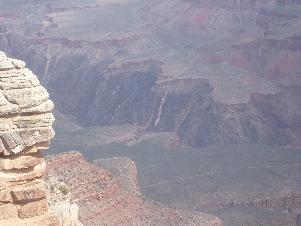 I have to admit, I wish I had planned this part of the trip much better than I did. I had planned to be there for two days, but I had not planned what I would specifically be doing over those two days. I ended up exploring the south rim of the canyon, from the East Entrance through Grand Canyon Village. I had assumed that the famous glass-floored Skywalk was at or near Grand Canyon Village. It isn’t. It’s 240 miles away. Yeah…it’s a BIG canyon. I also didn’t realize there are multiple tempting hiking trails going down into the canyon, so I was not equipped to undertake any of these hikes (though I had no problem with the “hike” along the Rim Trail and the various mini-hikes to the co-various lookout points). My final lament is that I didn’t book an aerial tour of the Canyon. I saw the occasional little tourist plane flying out over the canyon, and I’ve got to think it would be an amazing experience! But hey, even just walking the rim and going to the overlooks was an amazing experience! But I’m getting slightly ahead of myself.
