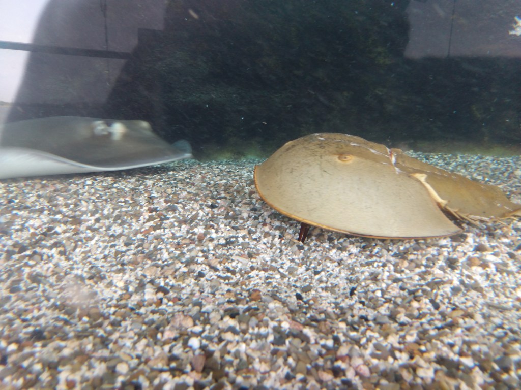 On the morning of Day 7, I awoke at an appropriate time, after an appropriate amount of sleep. So…yay! My plan for today was to visit the South Carolina Aquarium, then wing it. NOTE: If you are thinking of going to the SC Aquarium, the web site claims you MUST buy tickets online. So I went ahead and did that, which took me just long enough that I missed my bus. Since this bus route only runs every 30 minutes, and I had my supply of water on my back (see my Travel Tips from Day 6), I decided to proceed on foot. The idea was to keep an eye out for a place where I could have a large late breakfast / early lunch, then continue on foot or by bus, arriving at the aquarium between 11:00 and 11:30. Unfortunately, I did not happen across any breakfast joints, so I ended up walking all the way from my hotel on the west edge of the peninsula to the aquarium on the east edge. According to Google Maps, that’s 2.2 miles.