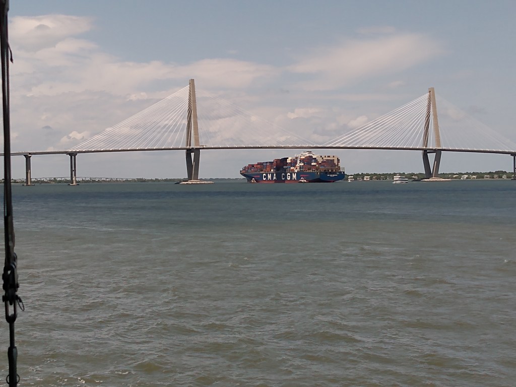 Once again I did not bring my camera, as I really didn’t intend to try to get any pictures in the aquarium. Then I realized that, being right on Charleston Harbor, the aquarium also offers more views of the Ravenel Bridge! And lighting conditions today were much better (sunnier) than the last couple days. So I tried to get some pics with my phone. Let’s see how that went, shall we?