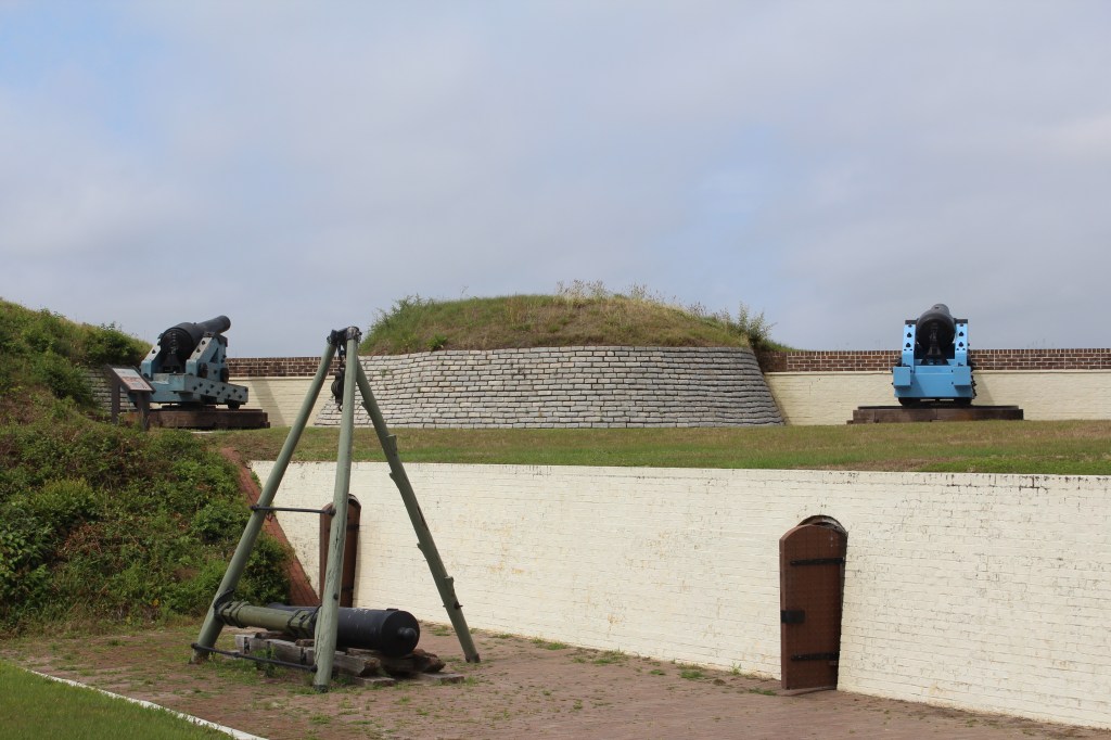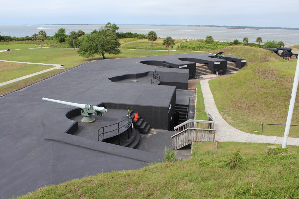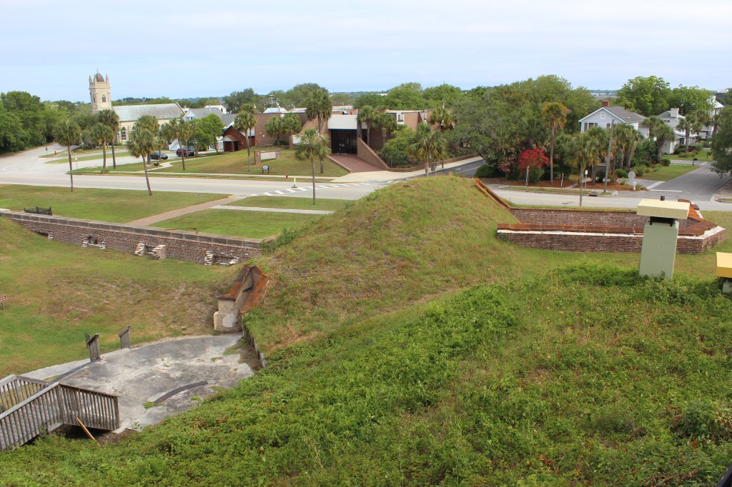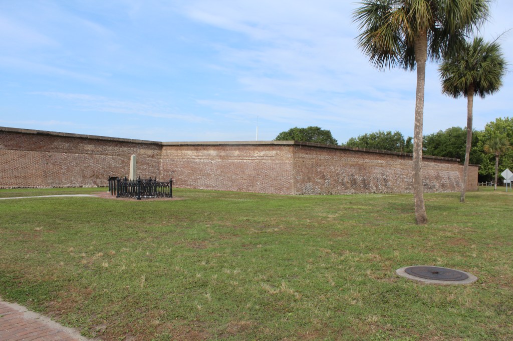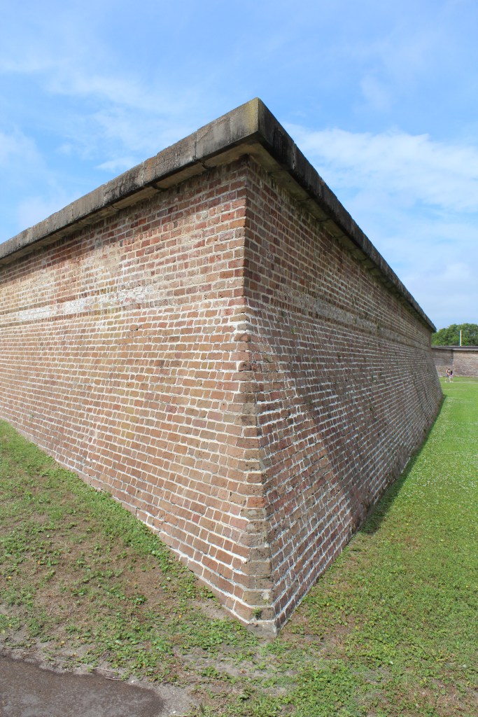 Welcome to the final day of my South Carolina trip! On the formal itinerary for this trip, I had set aside today for a hike at Congaree National Park. But when my visit to Fort Moultrie failed (Day 4), I decided to shuffle the itinerary a bit. If it came down to a choice between Congaree and Moultrie (and it did), Moultrie would win. This time, I skipped the Visitor Center and went directly to the fort itself. Historic coastal defense forts are yet another of those things that I’ve seen several of, but that are each unique. One of the interesting things about Moultrie is that there have actually been three forts at three separate times on this site. The first of those forts was made of palmetto logs and sand. If it weren’t for the fact that this log fort withstood bombardment by the British navy during the Revolutionary War, there would almost be a Three Little Pigs feel to the story. After the log-n-sand fort, an earthen fort was built here, followed by the brick fort that still stands today. Here’s a look at Moultrie III…