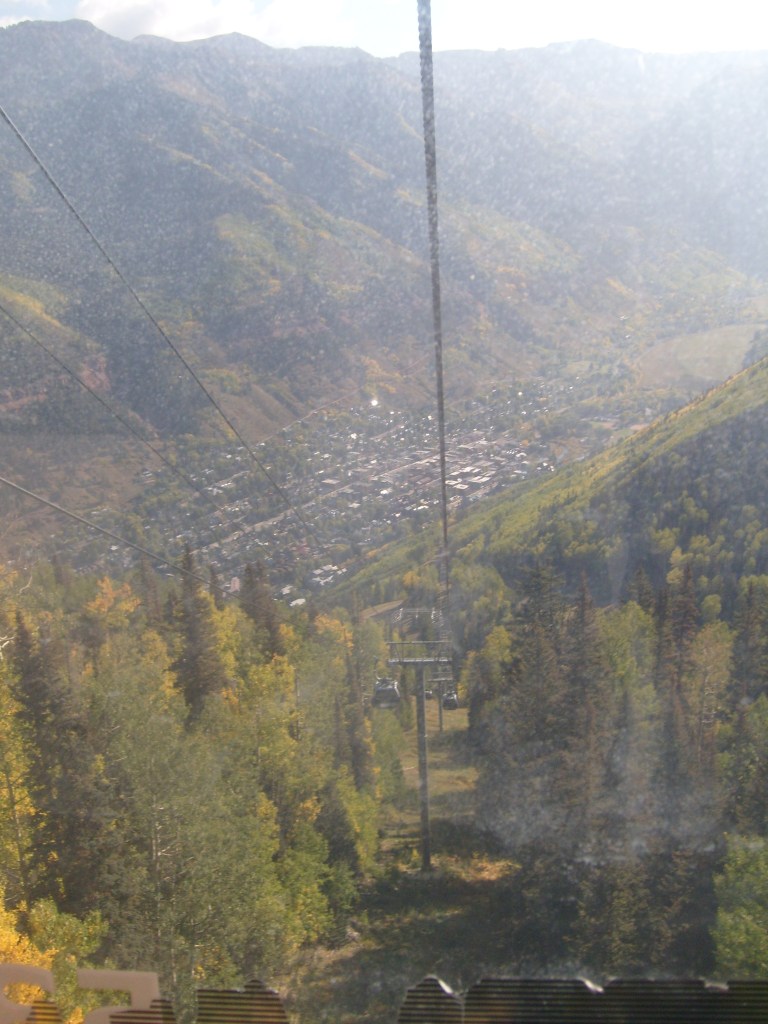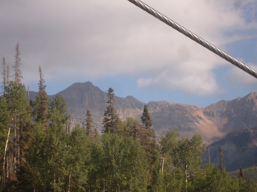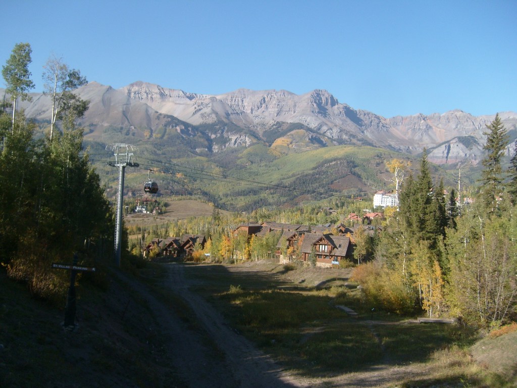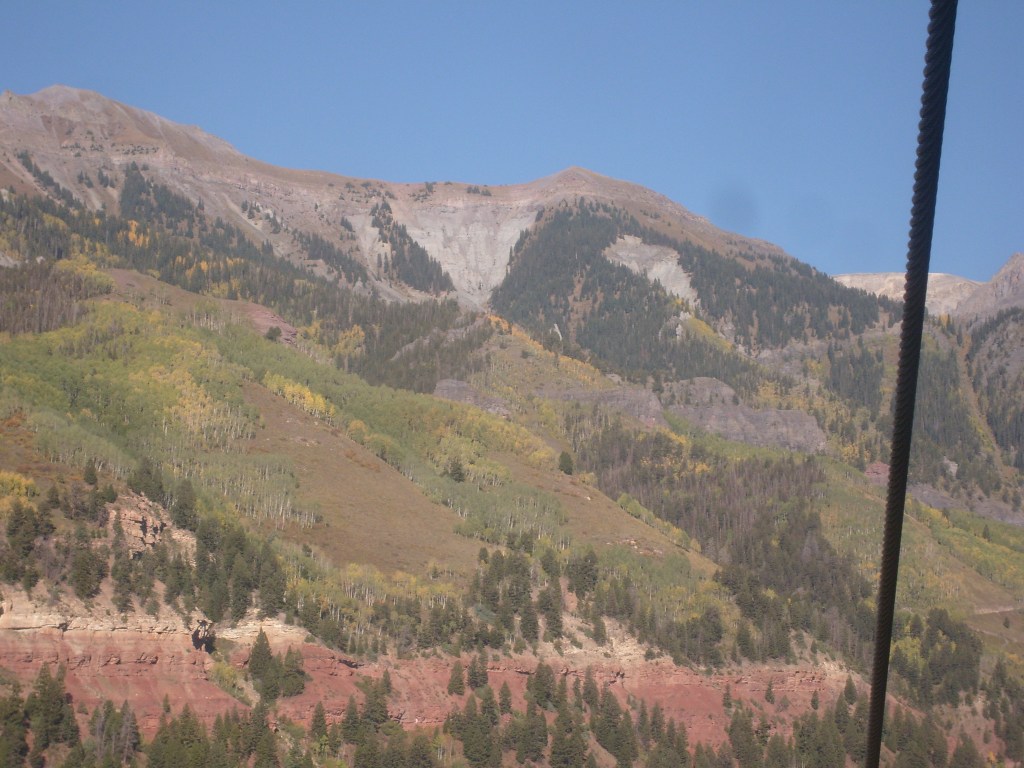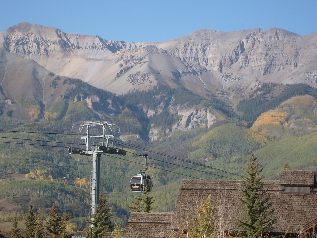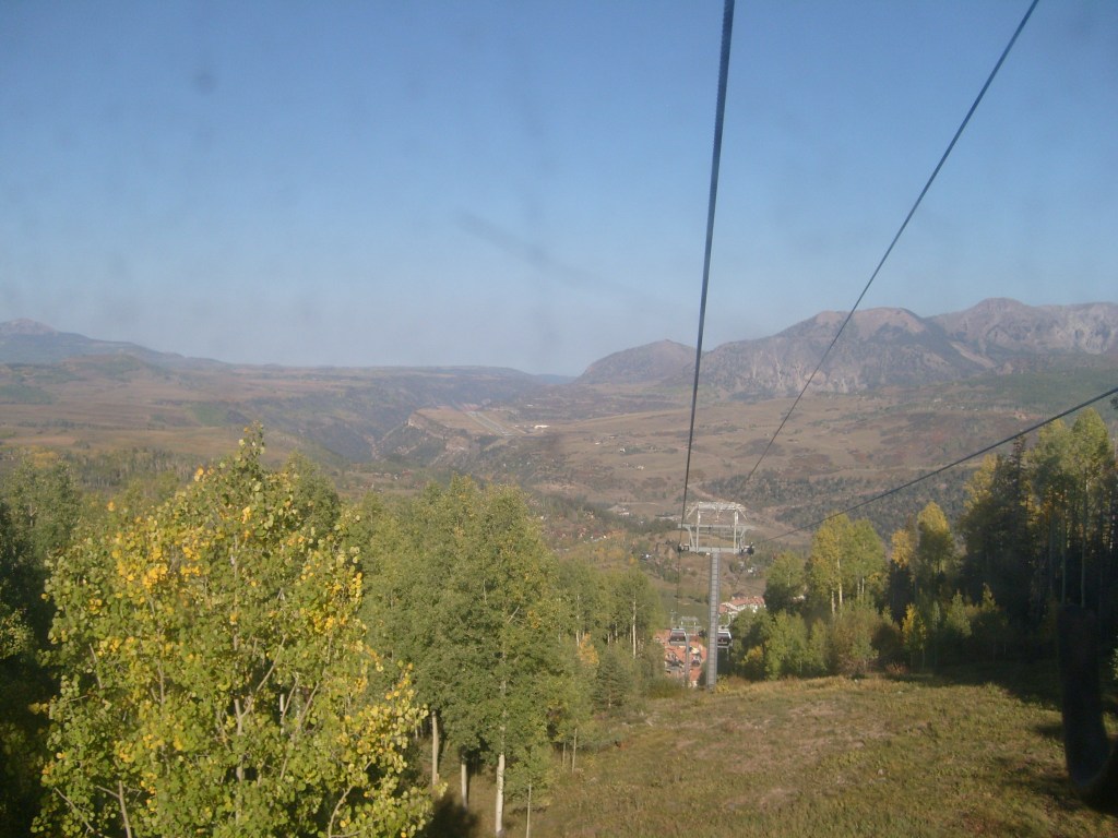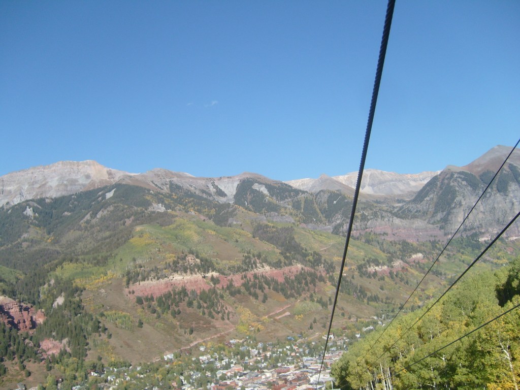 Once the sun had set, I drove through the darkness to my next stop – Telluride. Actually, I drove to a hotel in the town of Mountain Village, which I guess would be considered a suburb of Telluride. Mountain Village sits WAY up on a mountainside above Telluride. The best way to travel between the two towns is their free gondola lift system. So first thing the next morning, I walked the 1/4 mile from my hotel to the Mountain Village end of the gondola system, and enjoyed the amazing scenery on the ride down. You can, too! Just check out this next batch of photos…