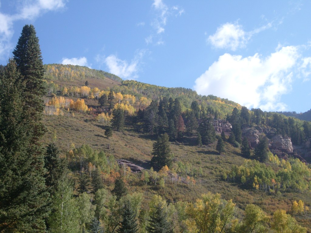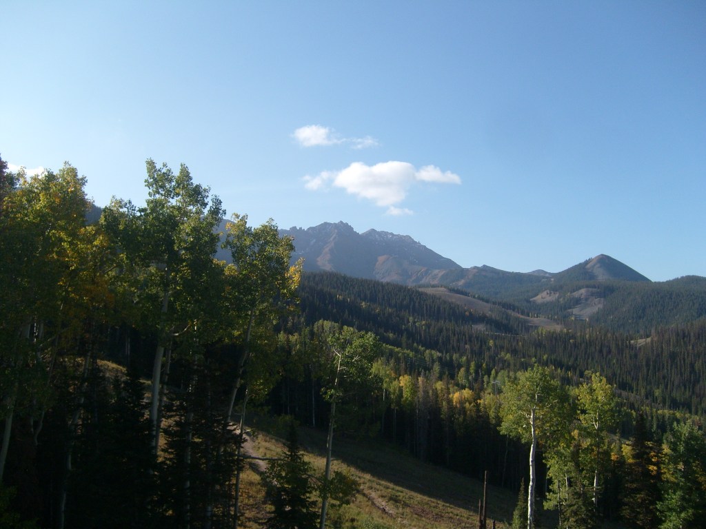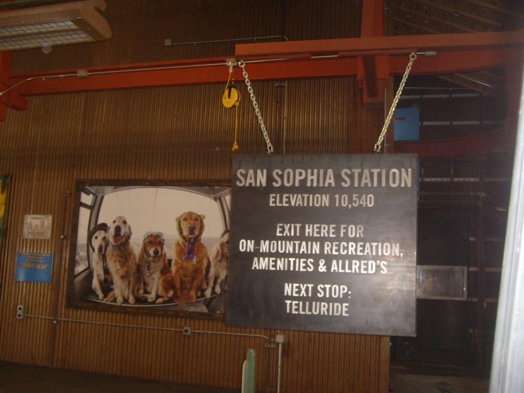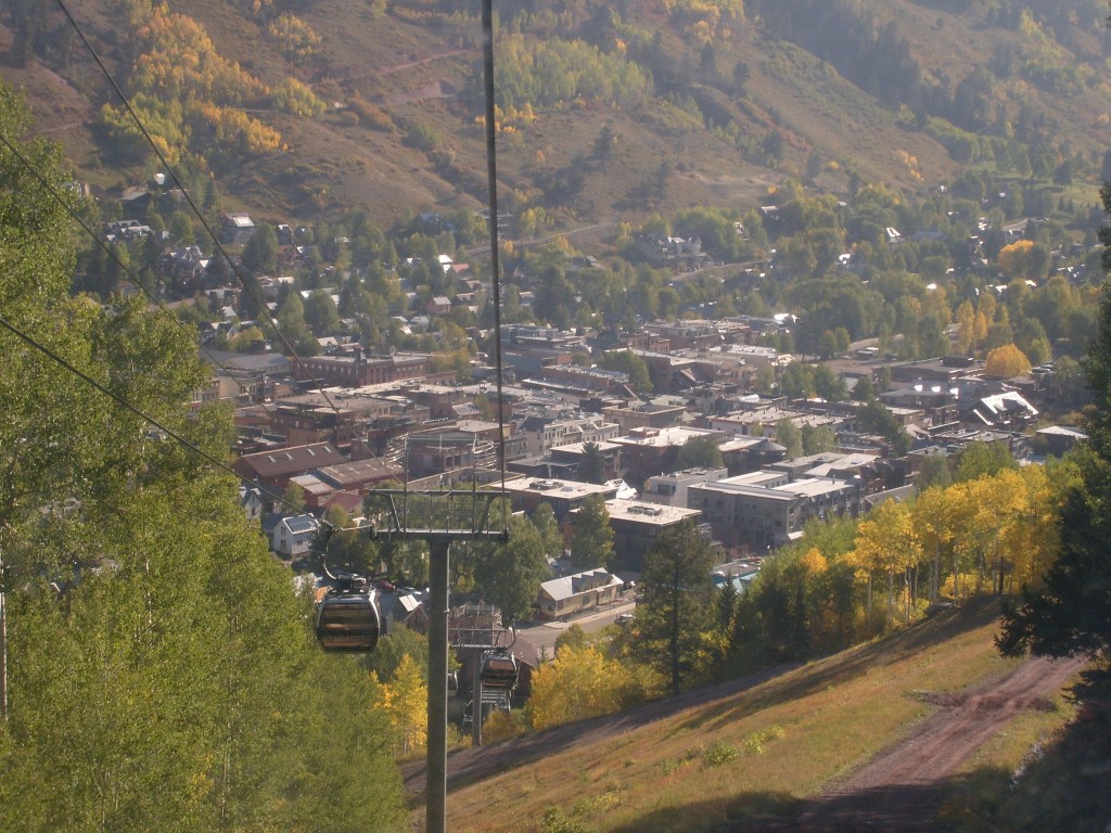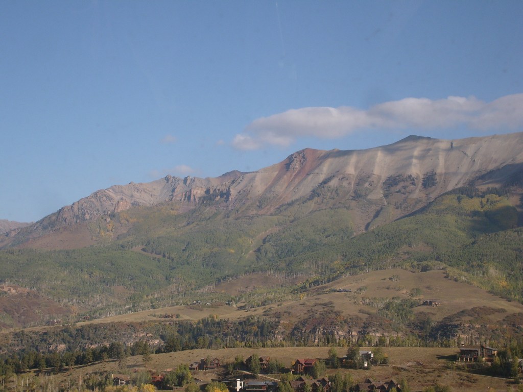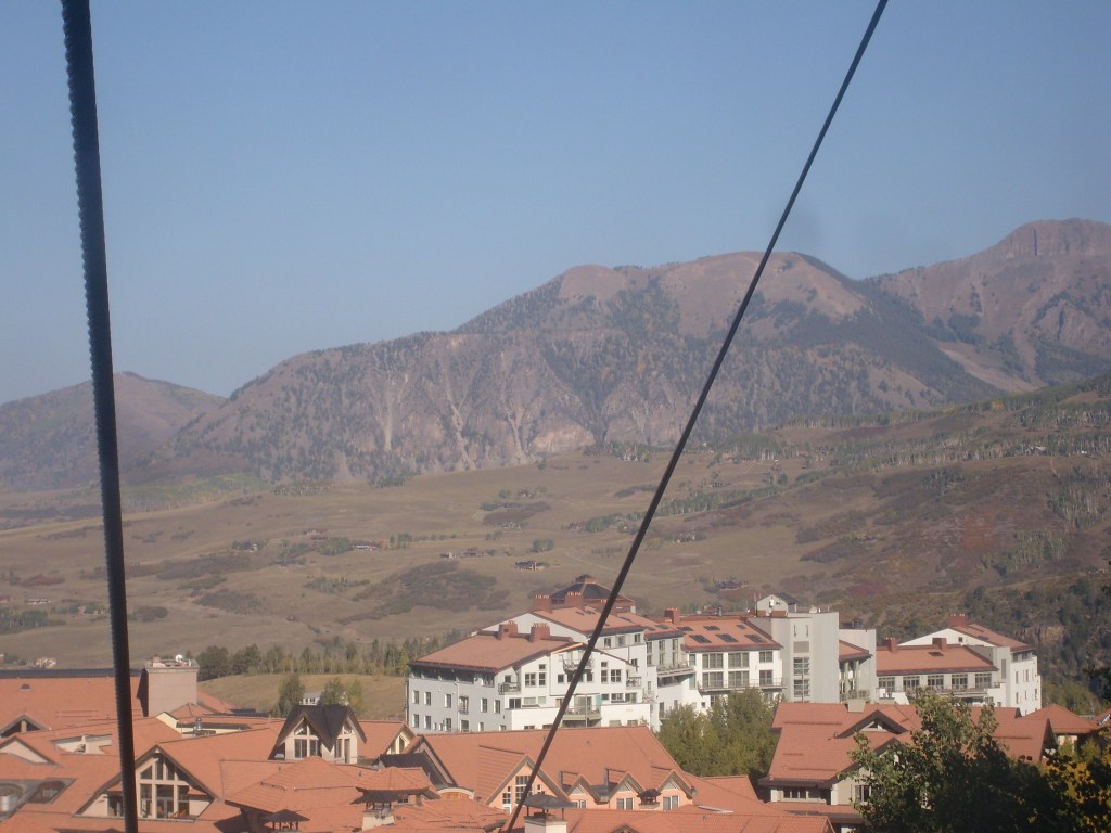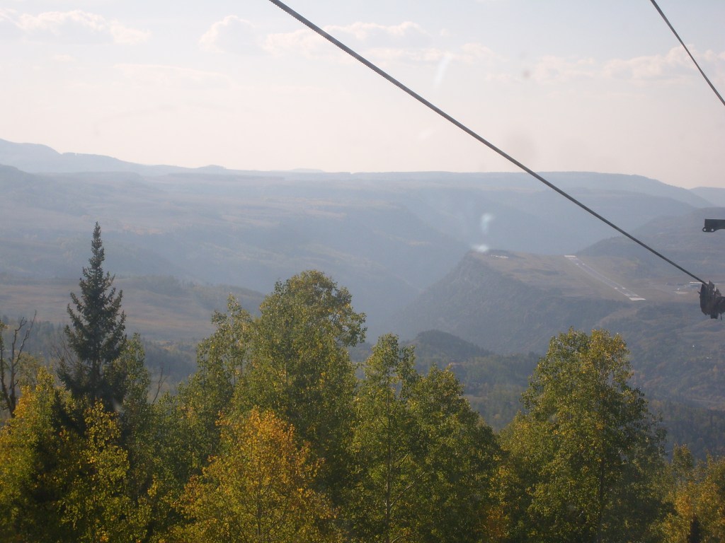 Once the sun had set, I drove through the darkness to my next stop – Telluride. Actually, I drove to a hotel in the town of Mountain Village, which I guess would be considered a suburb of Telluride. Mountain Village sits WAY up on a mountainside above Telluride. The best way to travel between the two towns is their free gondola lift system. So first thing the next morning, I walked the 1/4 mile from my hotel to the Mountain Village end of the gondola system, and enjoyed the amazing scenery on the ride down. You can, too! Just check out this next batch of photos…
