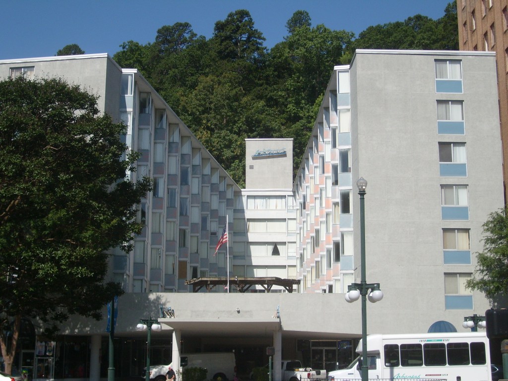 Looming menacingly on a hill overlooking the bathhouses is Hot Springs Rehabilitation Center Hospital. Check out this beast!