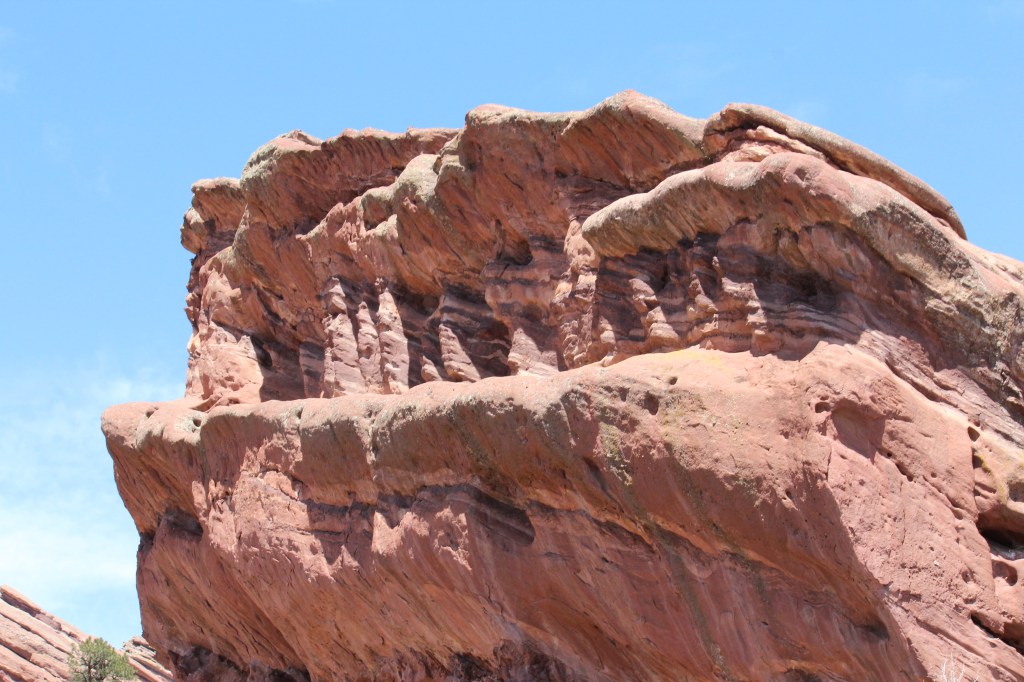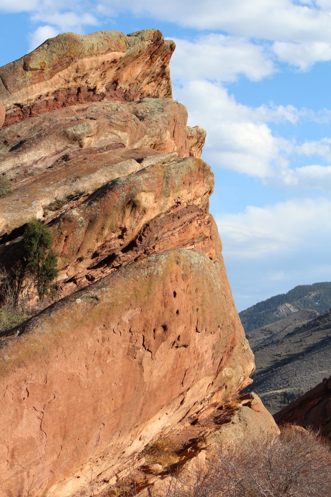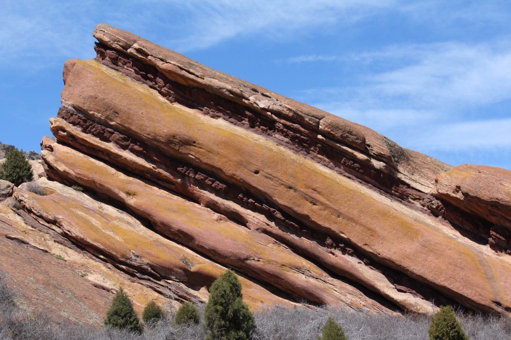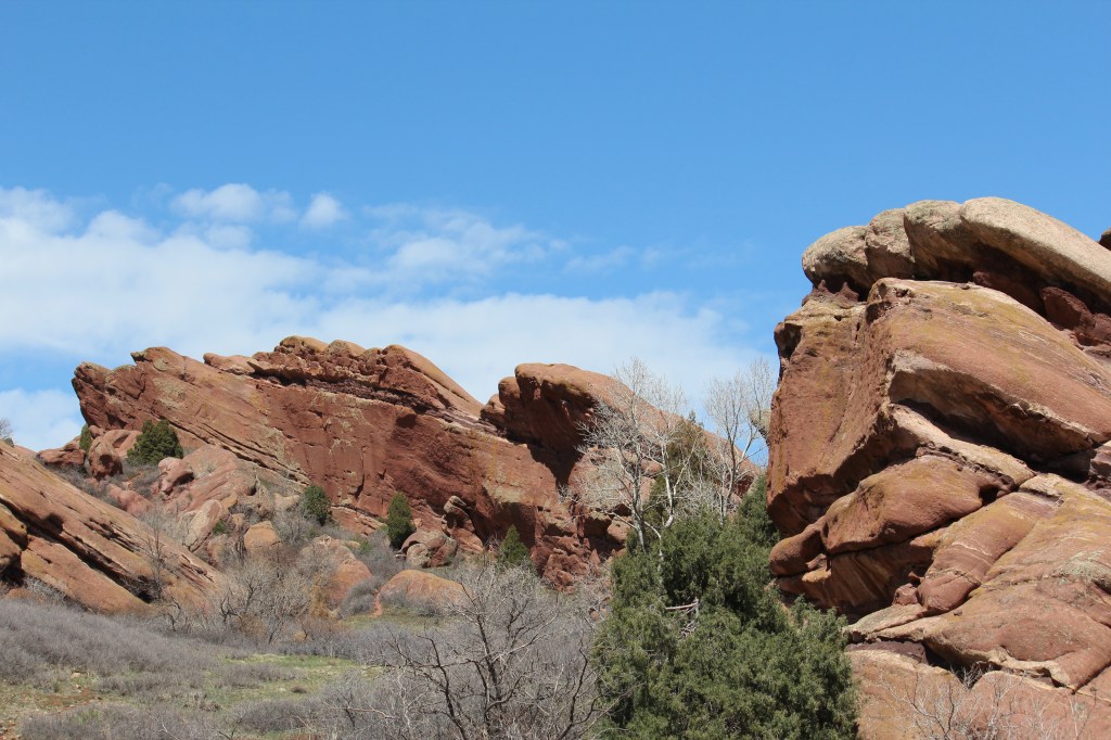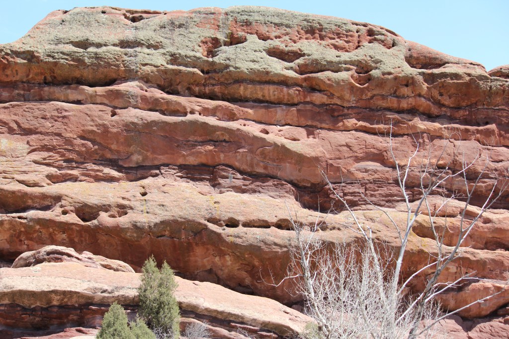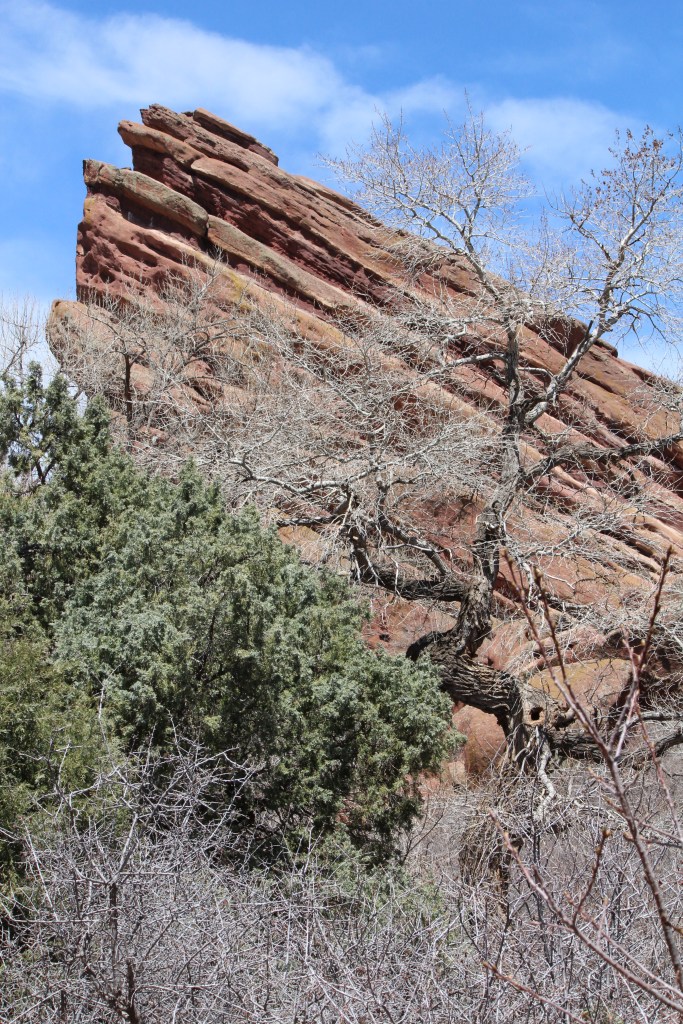 The day after my downtown Denver excursion with my then NEW CAMERA, I switched from urban scenes to Colorado’s natural beauty. Specifically, I hiked the Trading Post Trail at Red Rocks Park. This park is located in the foothills west of Denver, next to the town of Morrison. The park is best known for its amphitheater, which is one of Denver’s major concert venues. We’ll see that later. The Trading Post Trail is a 1.5-mile loop that meanders through the giant red rocks south of the amphitheater. There are multiple access points, including the namesake Red Rocks Trading Post, which is where I chose to begin my counter-clockwise jaunt around the loop.