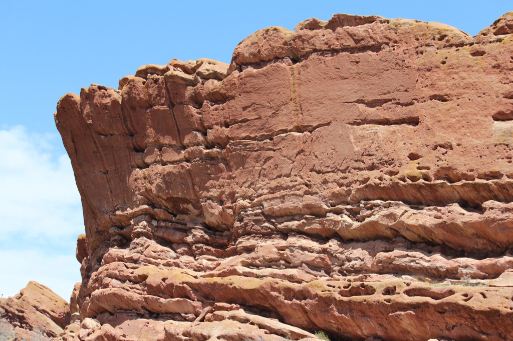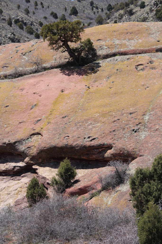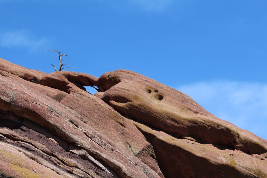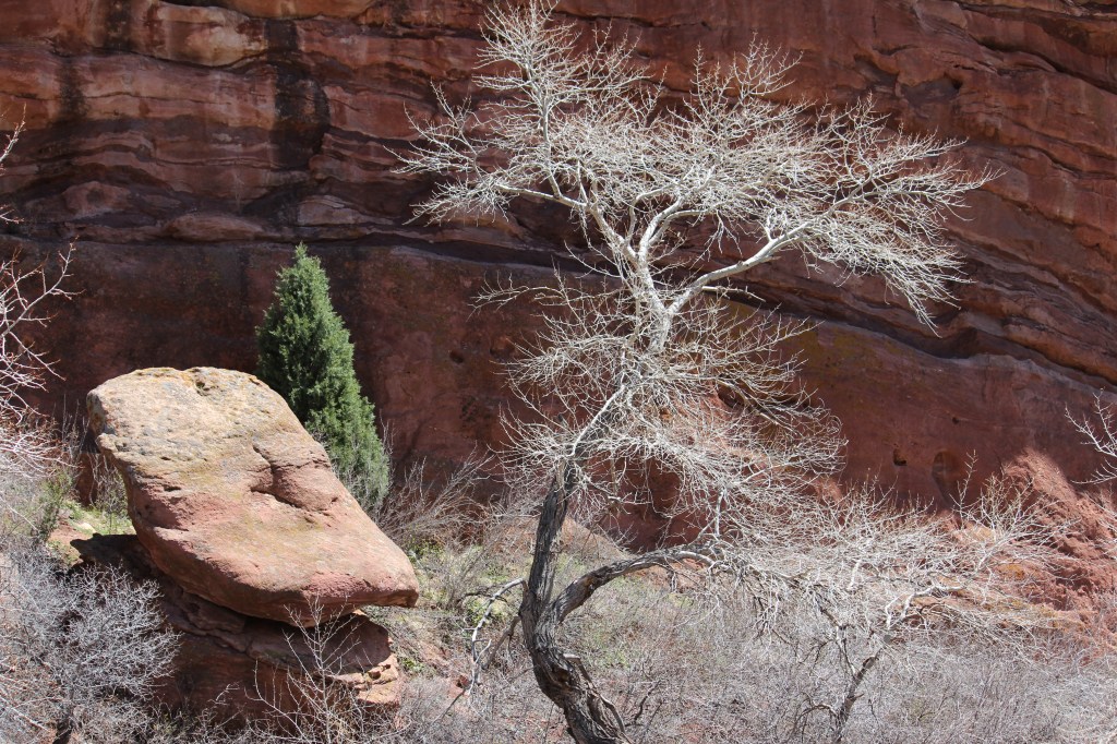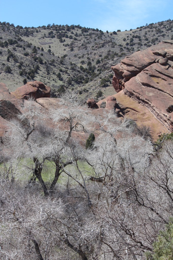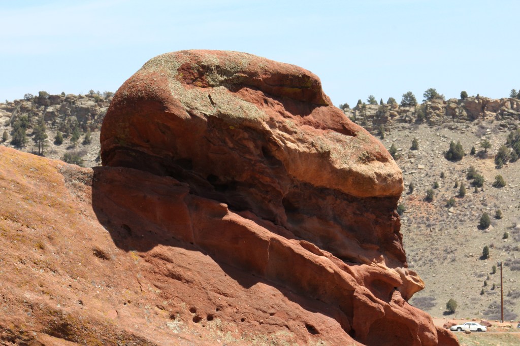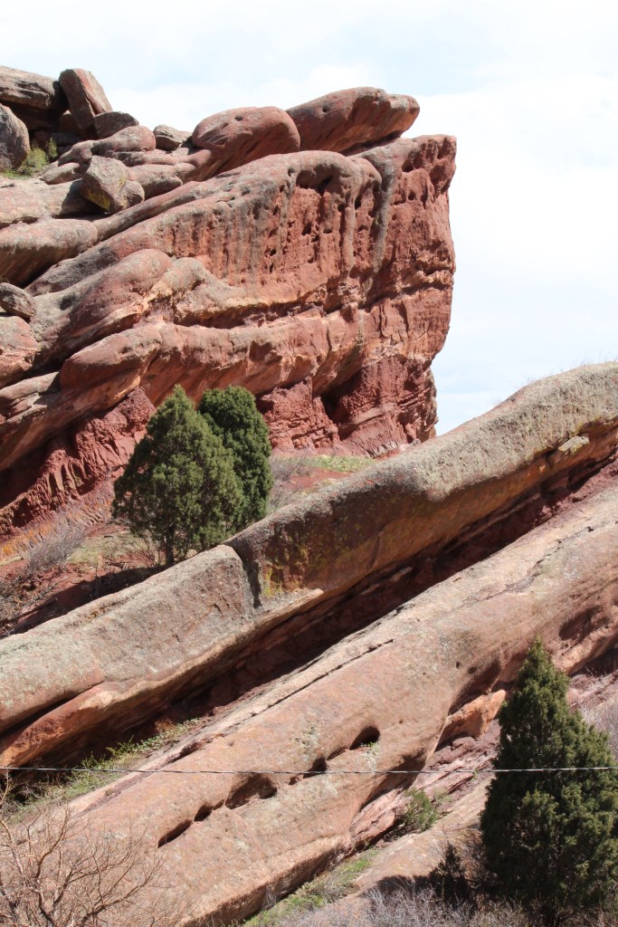 The day after my downtown Denver excursion with my then NEW CAMERA, I switched from urban scenes to Colorado’s natural beauty. Specifically, I hiked the Trading Post Trail at Red Rocks Park. This park is located in the foothills west of Denver, next to the town of Morrison. The park is best known for its amphitheater, which is one of Denver’s major concert venues. We’ll see that later. The Trading Post Trail is a 1.5-mile loop that meanders through the giant red rocks south of the amphitheater. There are multiple access points, including the namesake Red Rocks Trading Post, which is where I chose to begin my counter-clockwise jaunt around the loop.