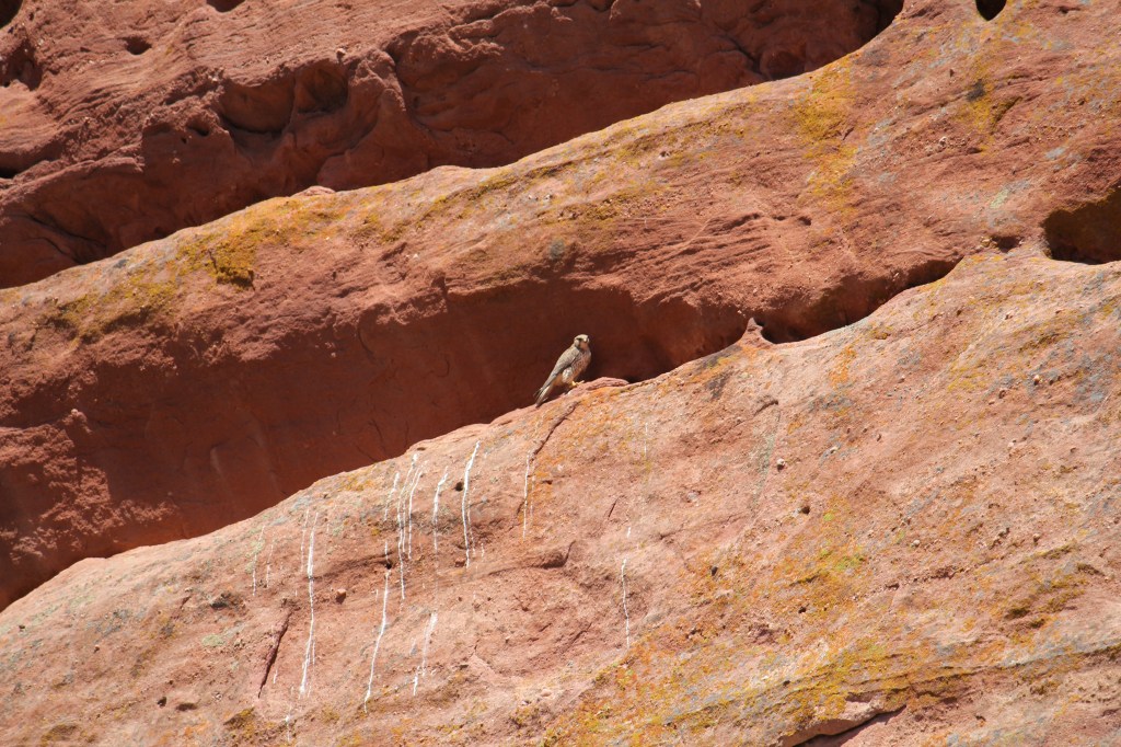 At approximately the half way point, the trail crosses Red Rocks Park Road, providing a nice view up a little canyon. On one side of this canyon is a cliff that is quite popular with a variety of birds. This next set of pics is a great example of why I upgraded to the Good Camera…