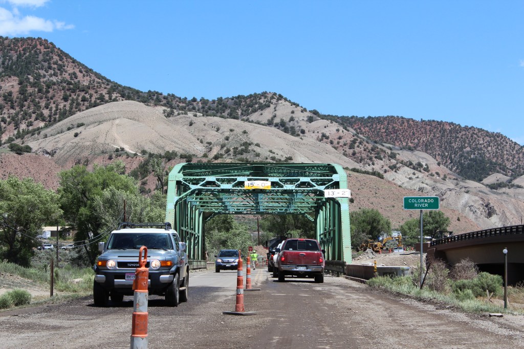 We have now reached the exit for the town of De Beque. For now, we’ll follow the frontage road, which was U.S. Highway 6 before the Interstate was built.