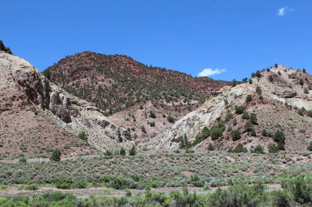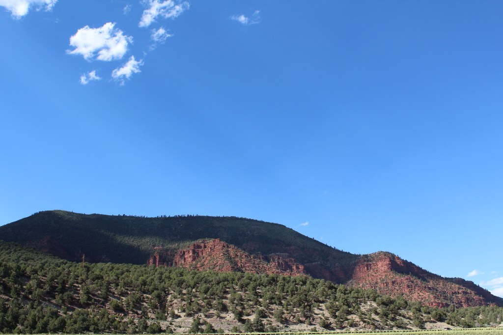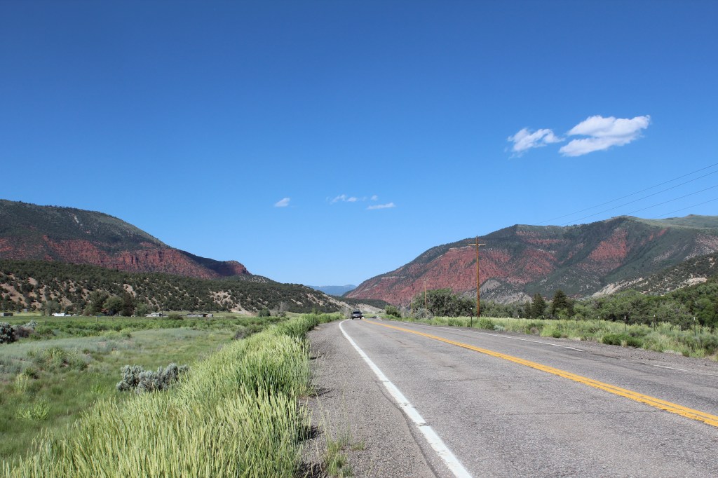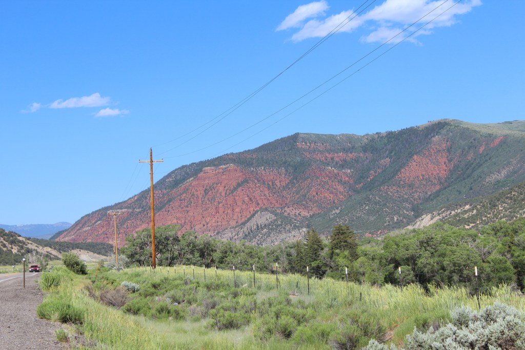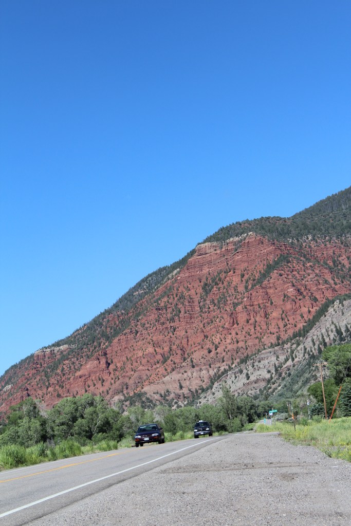 Continuing east along I-70, the red (and I mean RED, not the rust-colored soils and rocks that are called “red” elsewhere) foothills are a sign that we are nearing the city of Glenwood Springs.