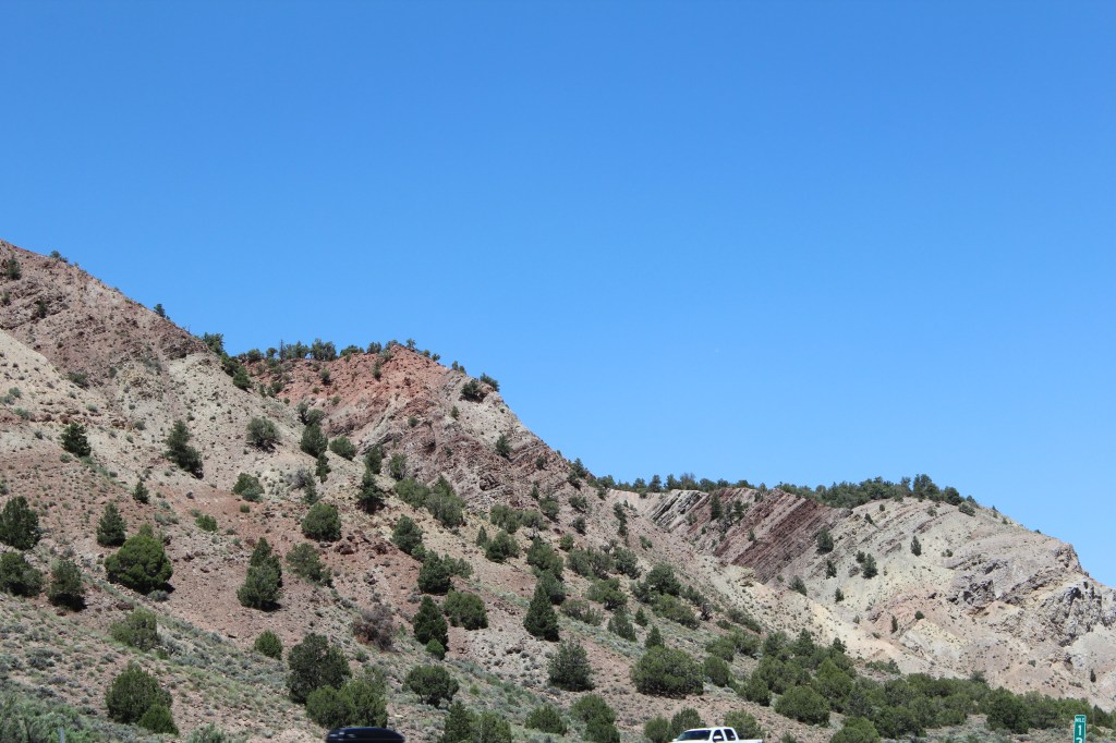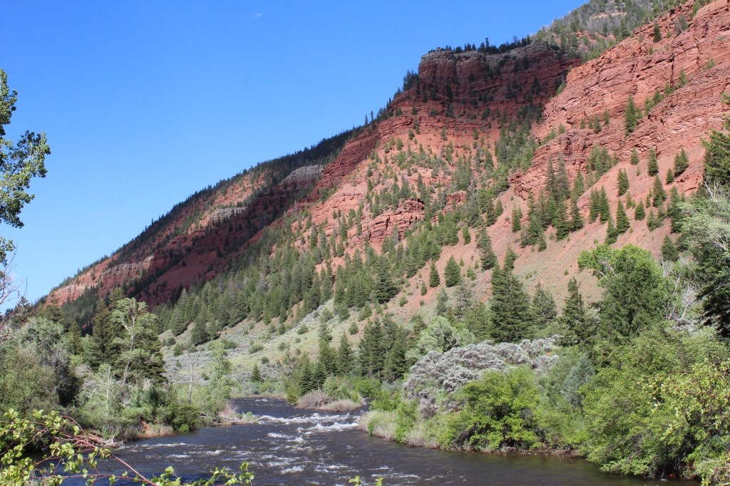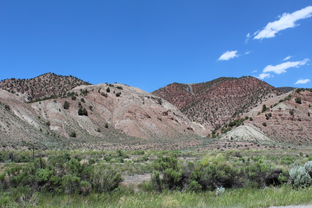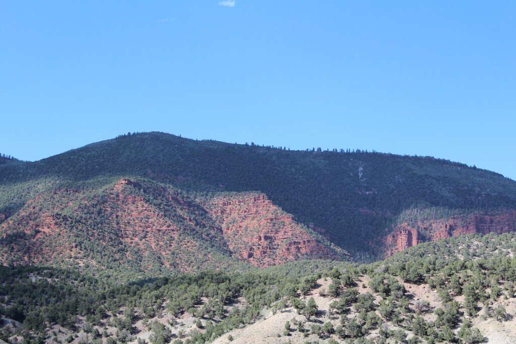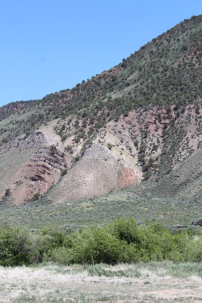 Continuing east along I-70, the red (and I mean RED, not the rust-colored soils and rocks that are called “red” elsewhere) foothills are a sign that we are nearing the city of Glenwood Springs.