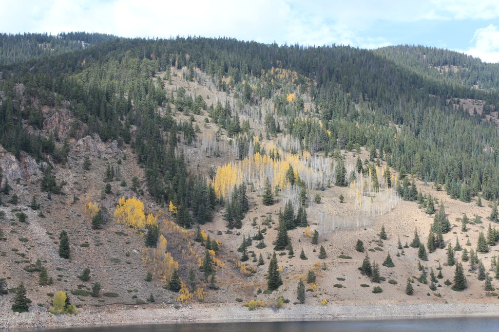 Leaving Tincup, we soon find ourselves at Taylor Park Reservoir. It has water. It is wet. It’s also scenic…