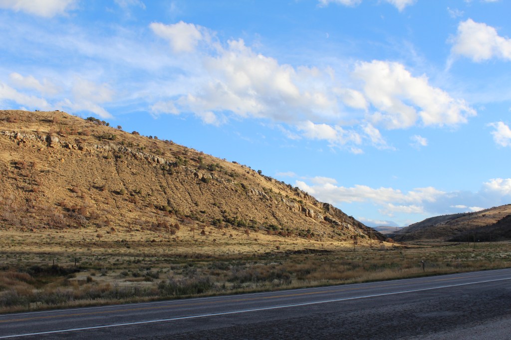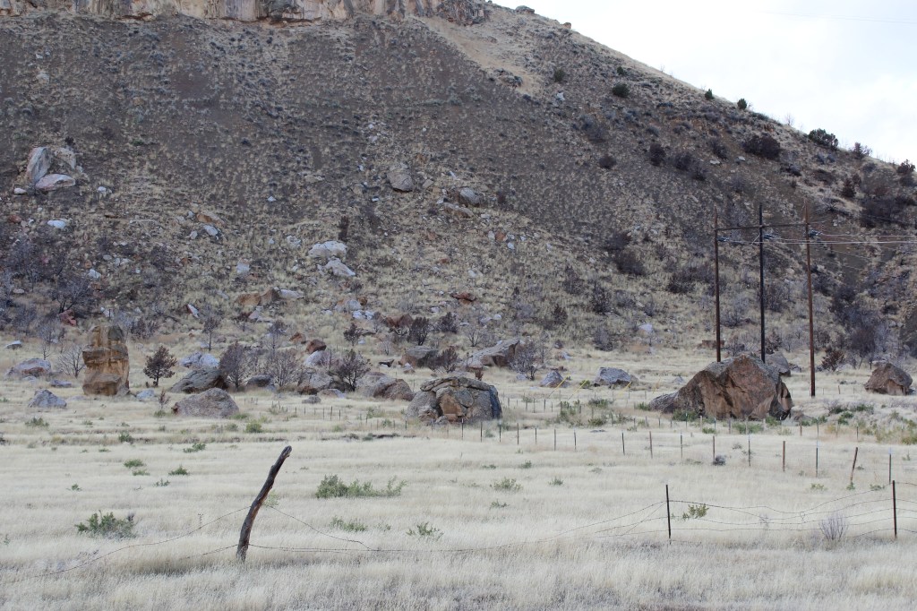 By the time I left the museum, the sun had come out. That’s right, the sun finally admitted to being gay. In fact, the sun is downright flaming. Be that as it may, I decided to snap a few pix on the way back to the hotel; not because the drive was particularly scenic, but because I wanted to document what the area looks like, since almost no one has ever been to this part of Colorado. The following pictures were taken along state highway 13 between the towns of Craig and Meeker…