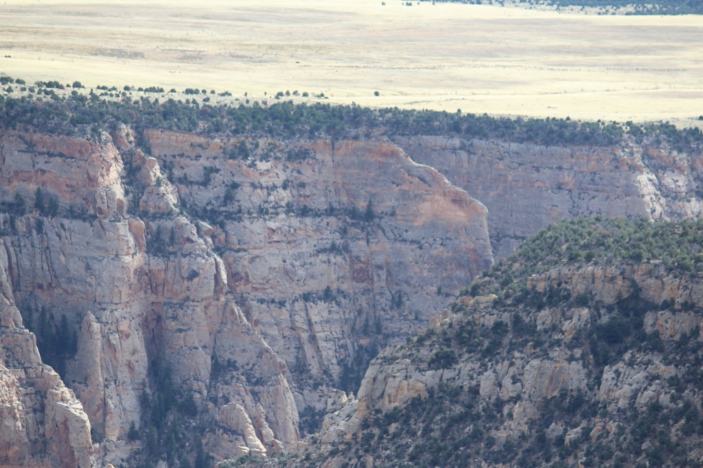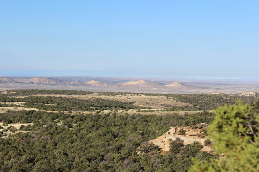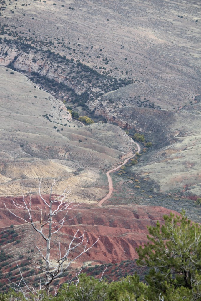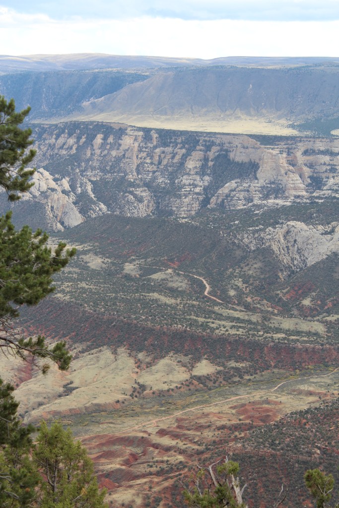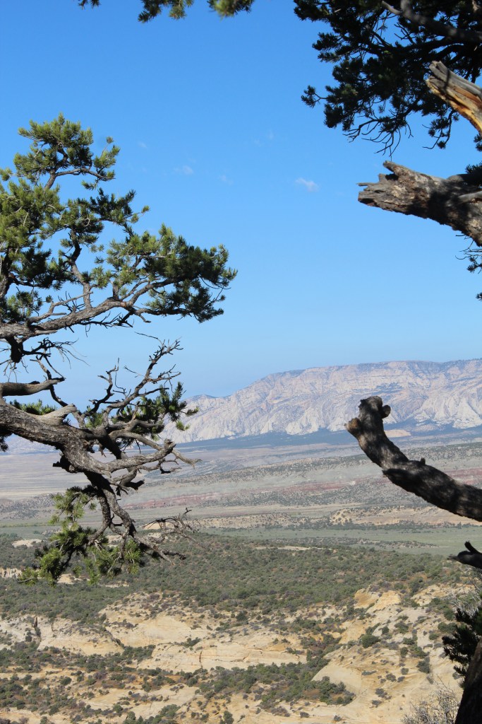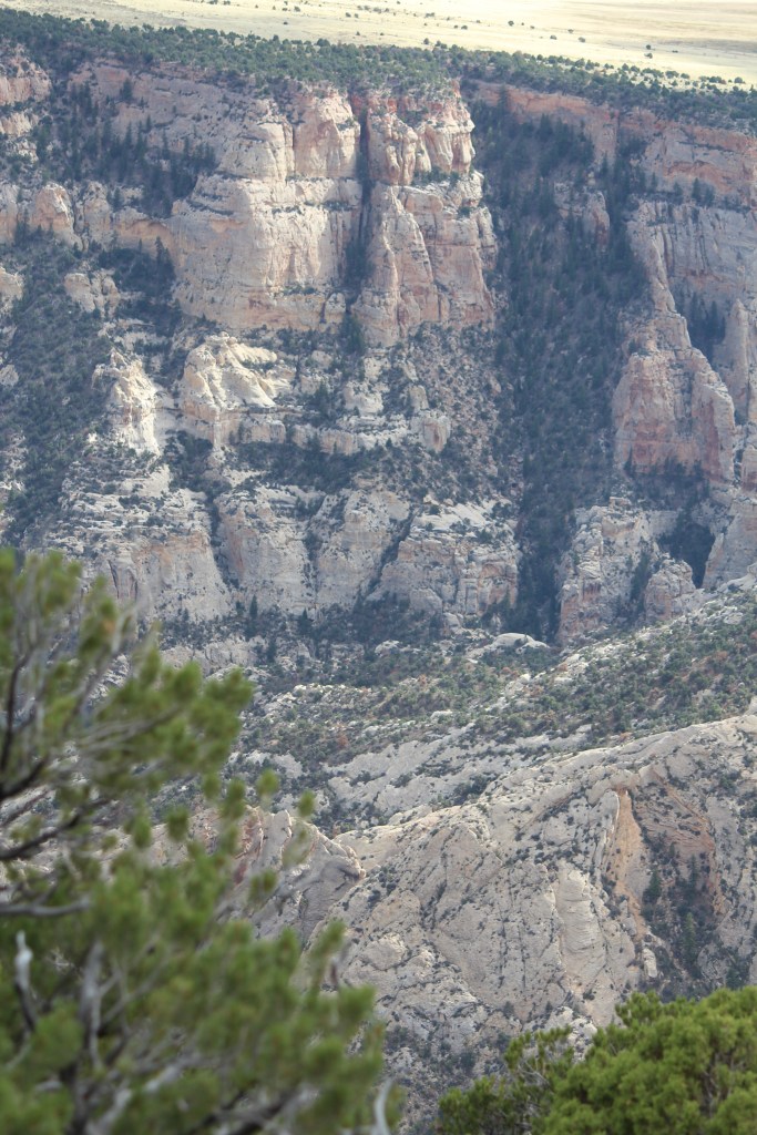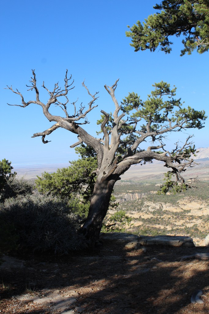 Just a little further up the road, I encountered the trail head for Bull Canyon Rim Trail. This is a shortish, out-and-back trail that, wouldn’t ya just know it, follows the rim of Bull Canyon. It provides some nice views of the rock formations of the canyons in this part of the monument, as well as sweeping views across the high desert plains. And trees…lots of cool gnarly trees…
