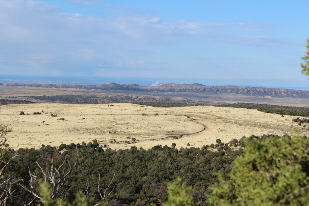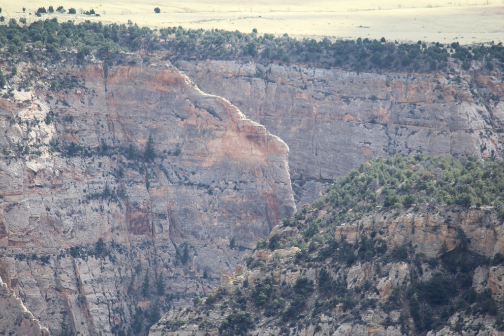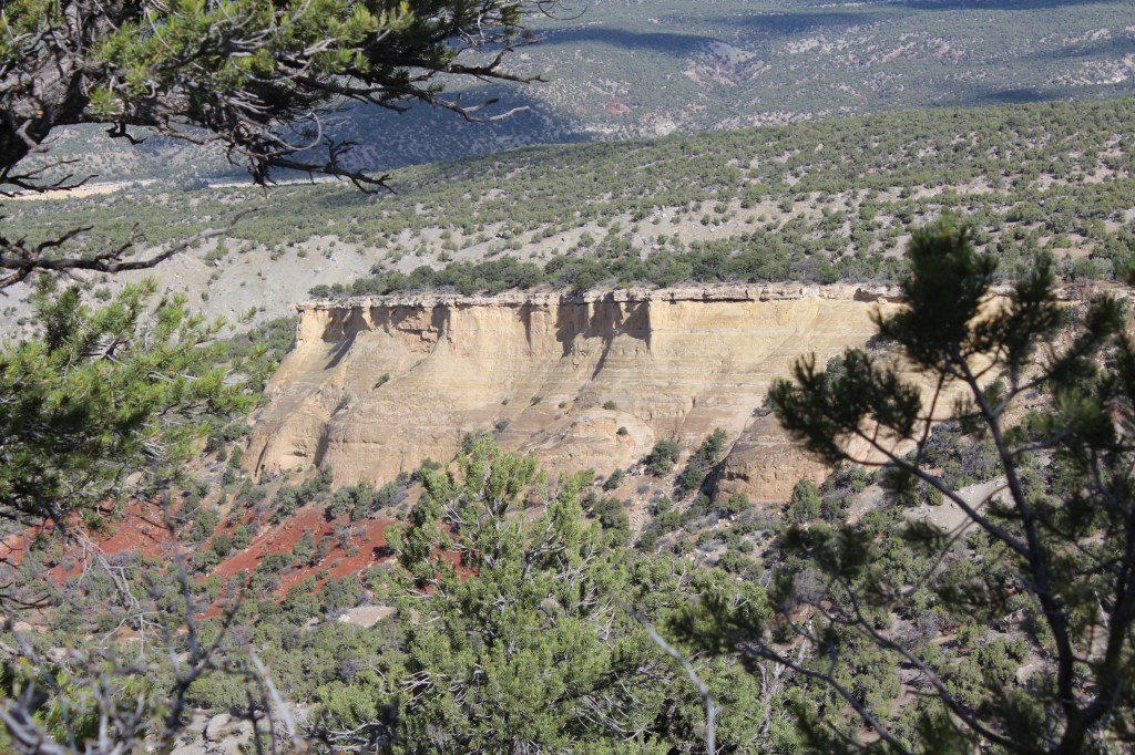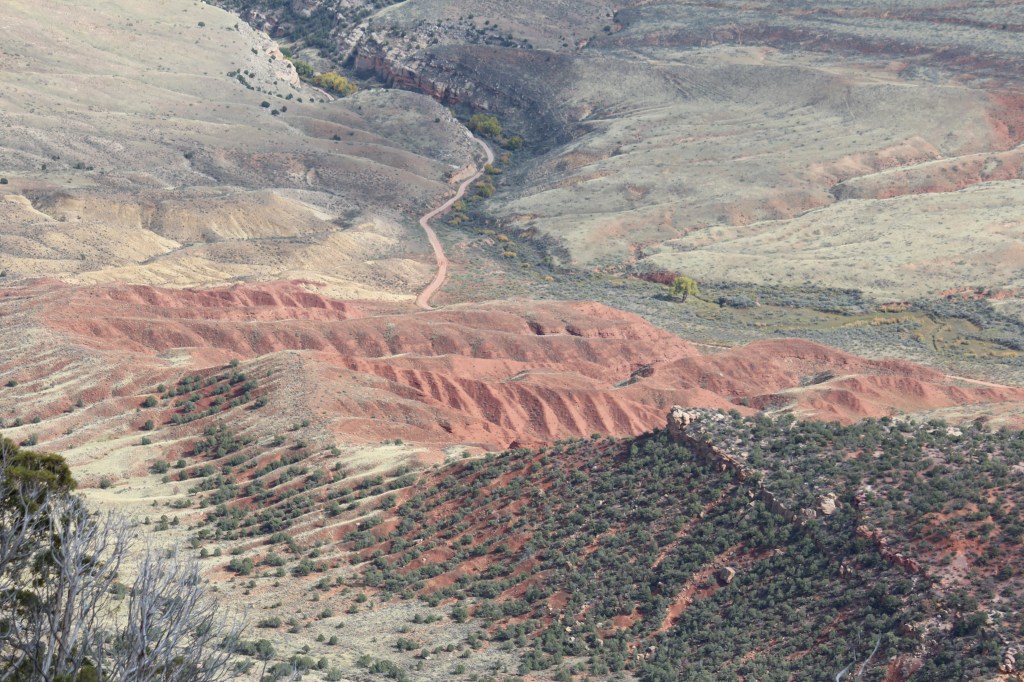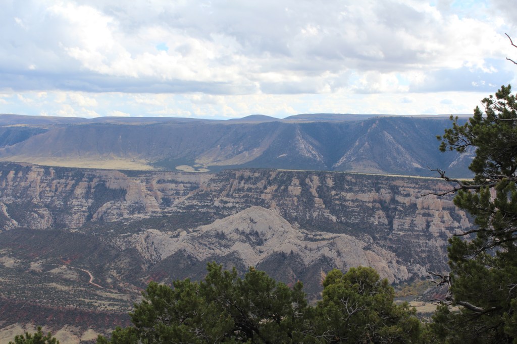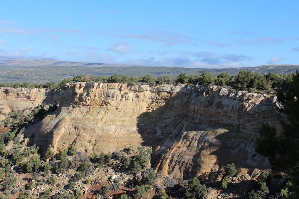 Just a little further up the road, I encountered the trail head for Bull Canyon Rim Trail. This is a shortish, out-and-back trail that, wouldn’t ya just know it, follows the rim of Bull Canyon. It provides some nice views of the rock formations of the canyons in this part of the monument, as well as sweeping views across the high desert plains. And trees…lots of cool gnarly trees…