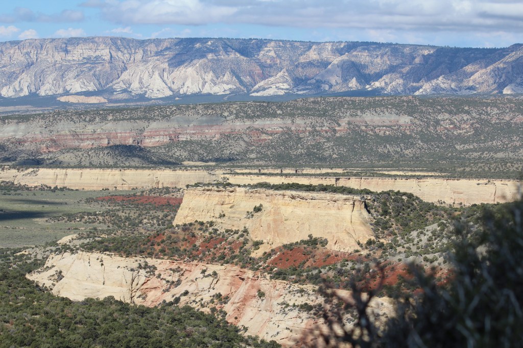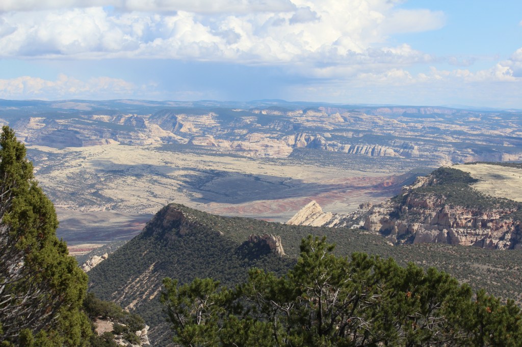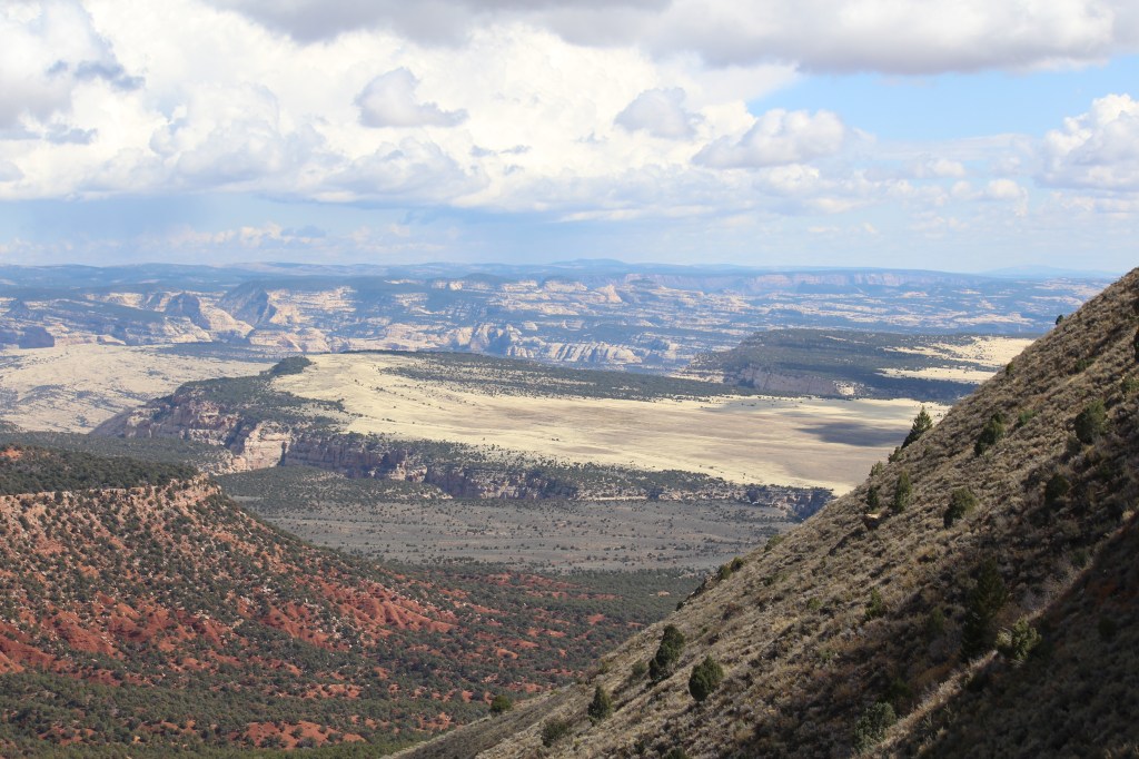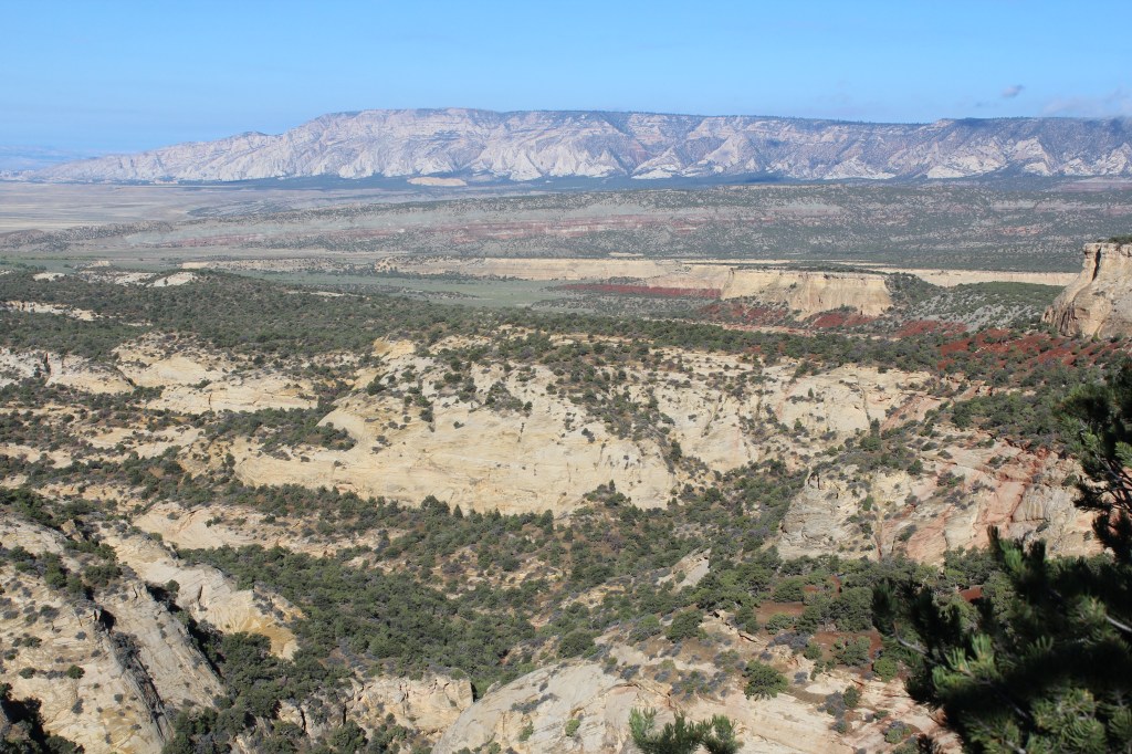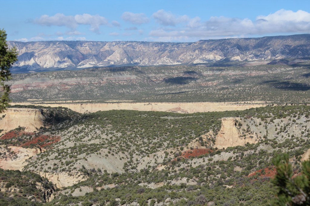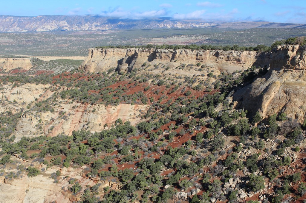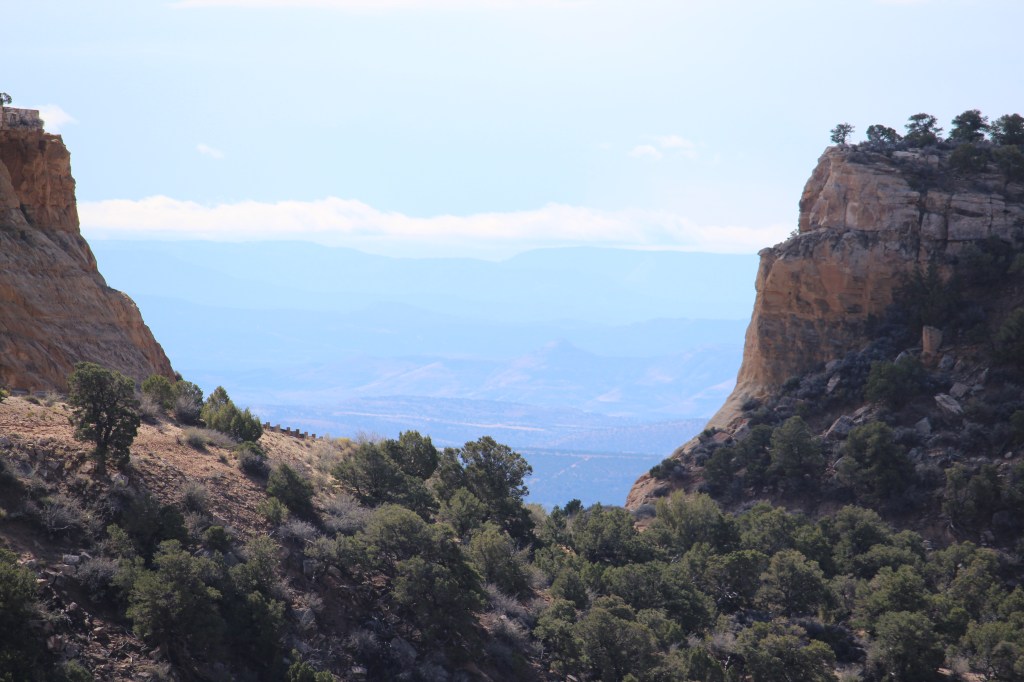 Just a little further up the road, I encountered the trail head for Bull Canyon Rim Trail. This is a shortish, out-and-back trail that, wouldn’t ya just know it, follows the rim of Bull Canyon. It provides some nice views of the rock formations of the canyons in this part of the monument, as well as sweeping views across the high desert plains. And trees…lots of cool gnarly trees…