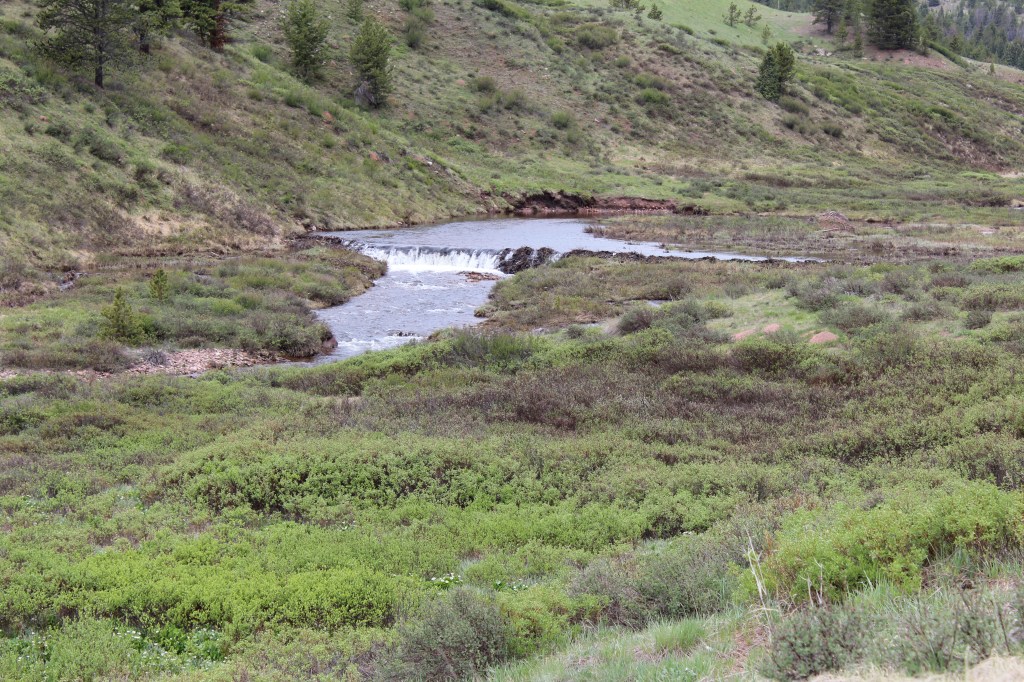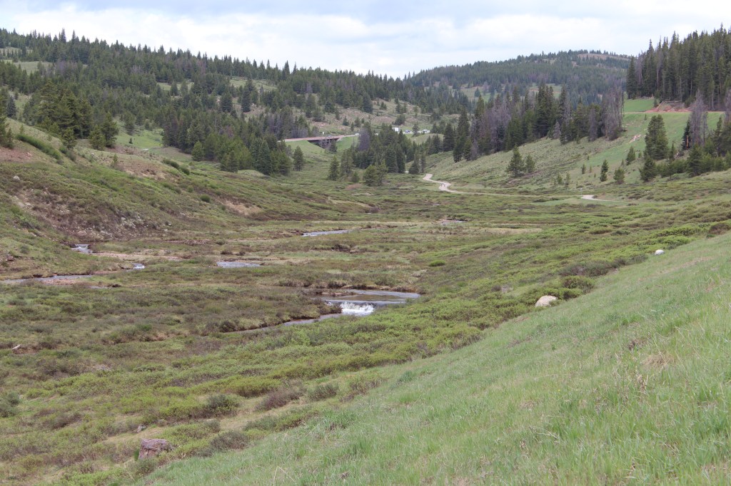 About a month ago, I posited that U.S. Interstate Highway 70 through western Colorado is the most scenic length of Interstate in the country. Consider today’s post to be a continuation of that thought. In June 2013, I headed back up I-70 with a small group of friends / acquaintances / victims. The purpose this time was to hike from the base of Copper Mountain up to Vail Pass. This was accomplished via a paved hike/bike trail that follows the valley floor, between the two widely separated roadways that are I-70. As I recall, it was cold and very windy, which is to be expected at 10,662 feet above sea level.