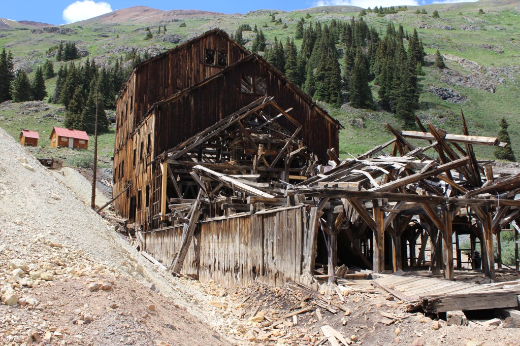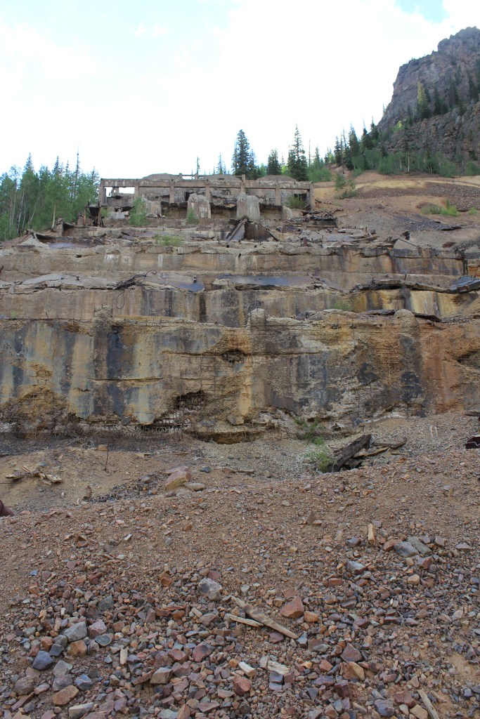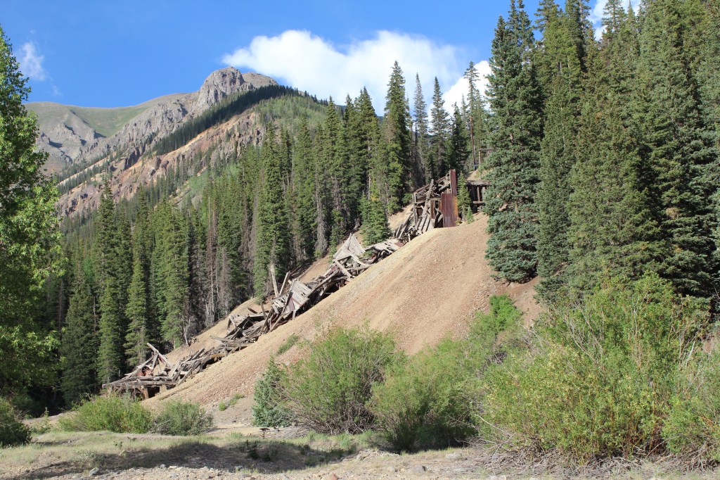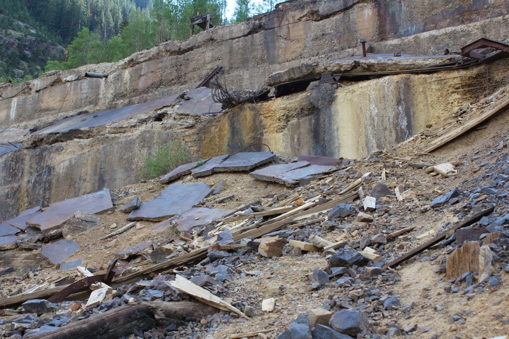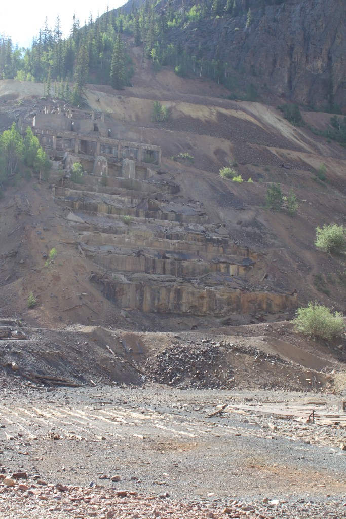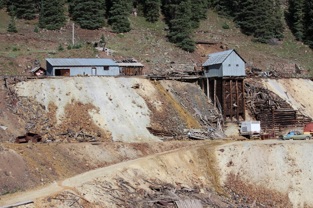 If you think back (or scroll back up) to the Gold Prince Mill in Animas Forks, it may strike you that there’s surprisingly little left of it, seeing as how it only dates back to the early 20th Century. The reason, referring again to the book Ghost Towns of Colorado by Philip Varney, is that the Gold Prince Mill was dismantled and used in the construction of Eureka’s Sunnyside Mill, which is featured in the gallery below. You’ll see there’s not much left of this one either. I’m guessing it, too, was purposefully dismantled after it was closed for good in 1938.