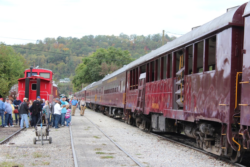 Welcome to another voyage through time (no TARDIS required), also known as ThrowBack Thursday (TBT). This time, TBT brings us to October 2015, to witness a return to the mountains around Cherokee, North Carolina. We’ll begin at Bryson City, a small town which serves as the starting point for the Great Smoky Mountains Railroad (GSMR). That’s right…another train ride. What can I say? Me like Choo-Choo. But when I go ridin’ a train, I focus on enjoying the experience, rather than photographing it. Thus, I only took pictures when the train was stopped, and thusly thus the pics I have from GSMR don’t include the scenery along the route. But in this case, you’re not missing anything. For most of this route, the train is surrounded by fairly dense forest. While a relaxing ride through a forest can be enjoyable, it’s not particularly photogenic. While GSMR has a steam locomotive that sees occasional use, I only saw diesels when I was there – and not the cool streamlined diesels of old. So, unless you’re a serious rail fan just lookin’ to chill in the woods, GSMR may not be for you. But have a look at the few pics I took: