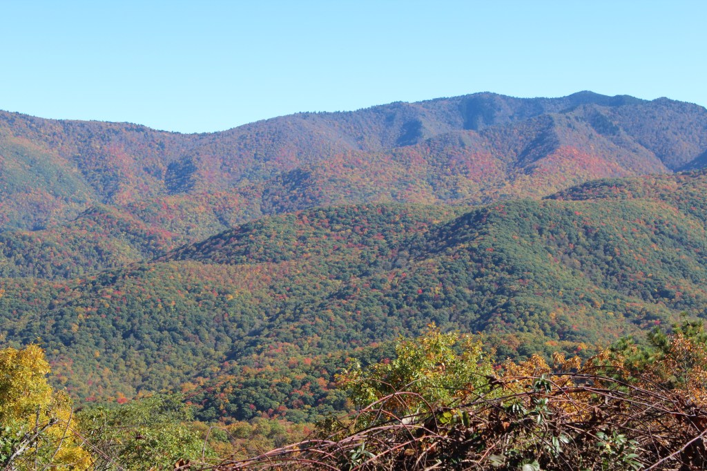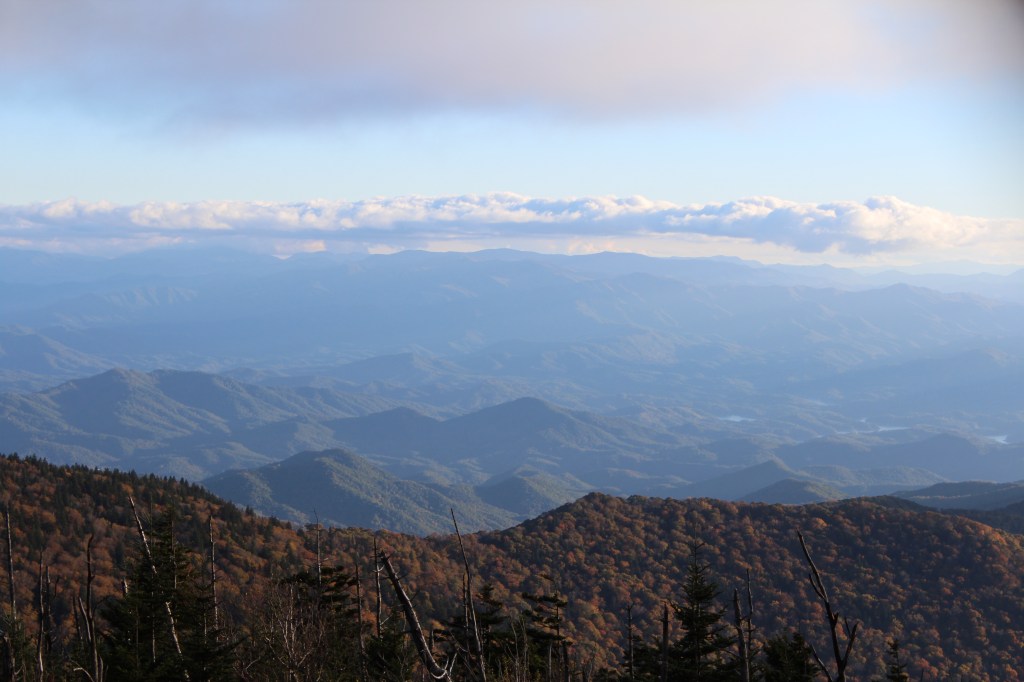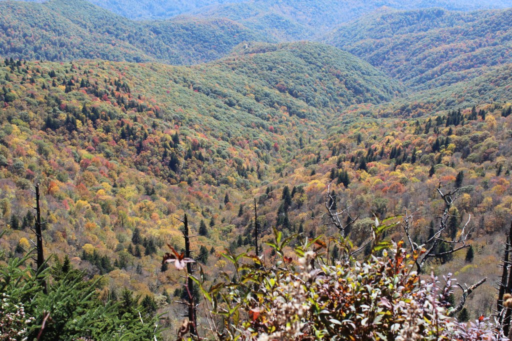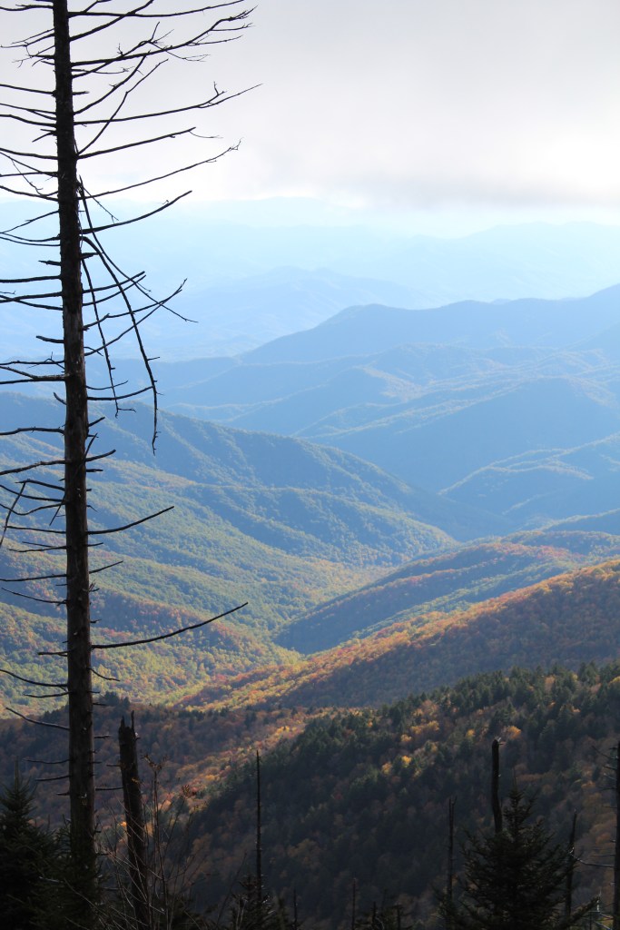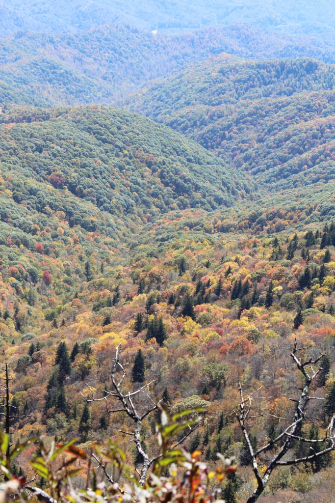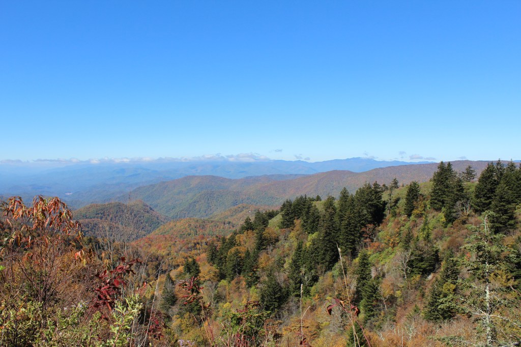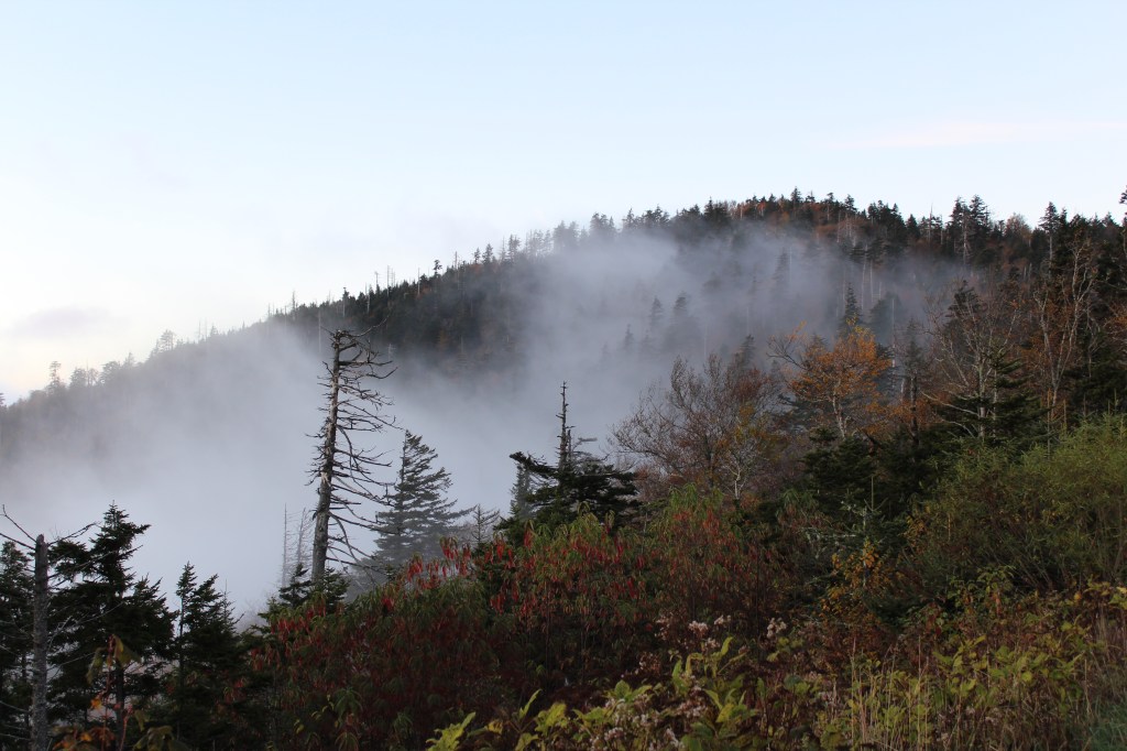Continuing upward in elevation, I soon noticed that autumn had definitely arrived here. I took the next group o’ photos along the drive up to the Clingmans Dome overlook: