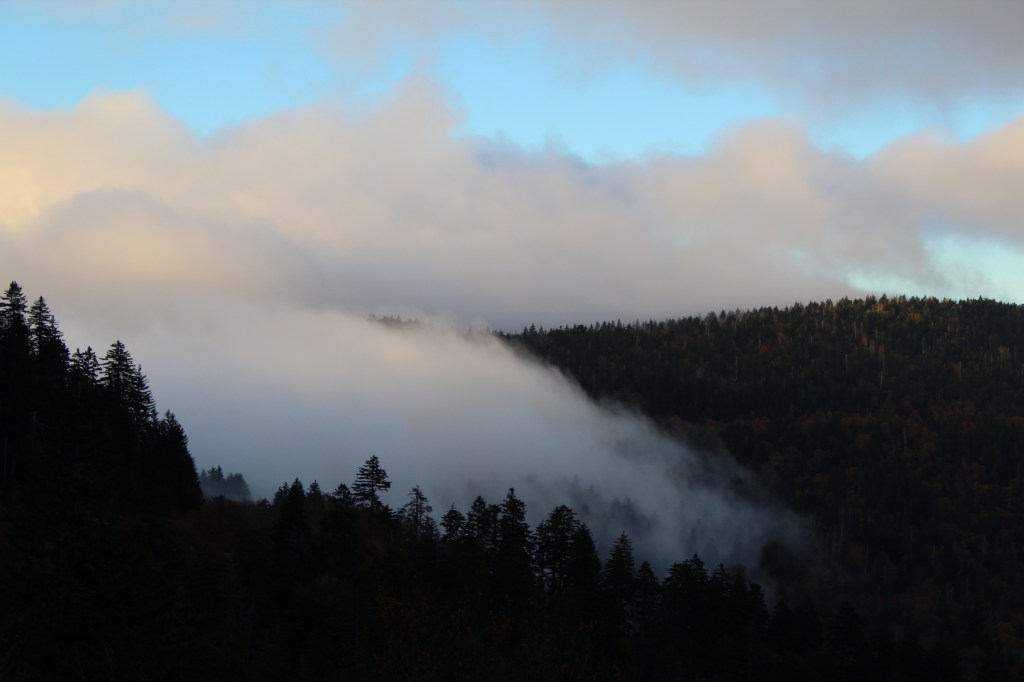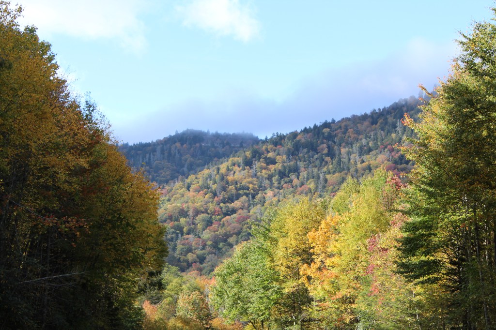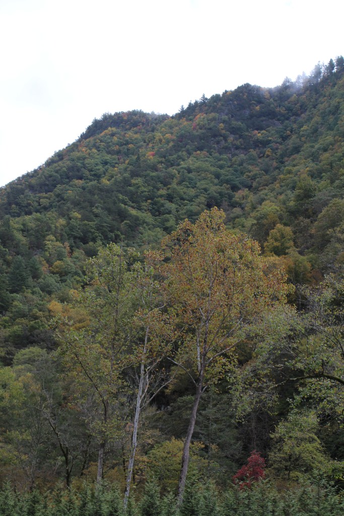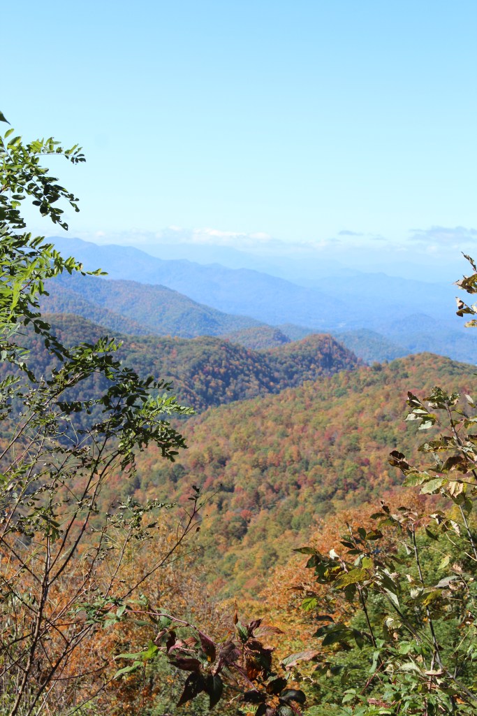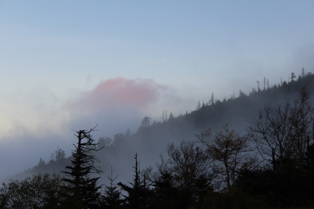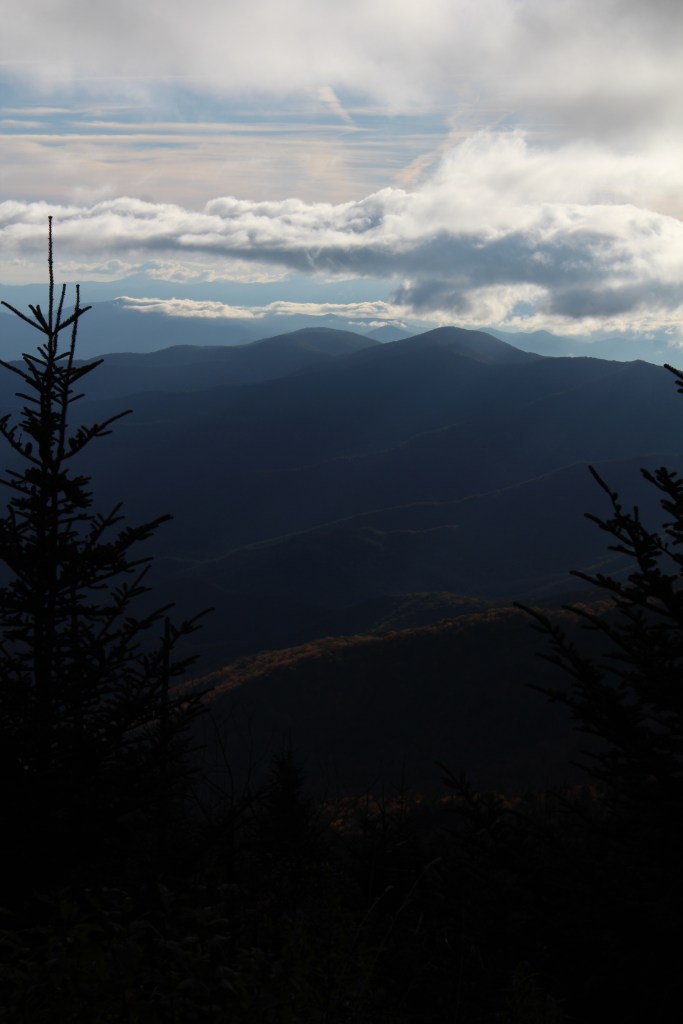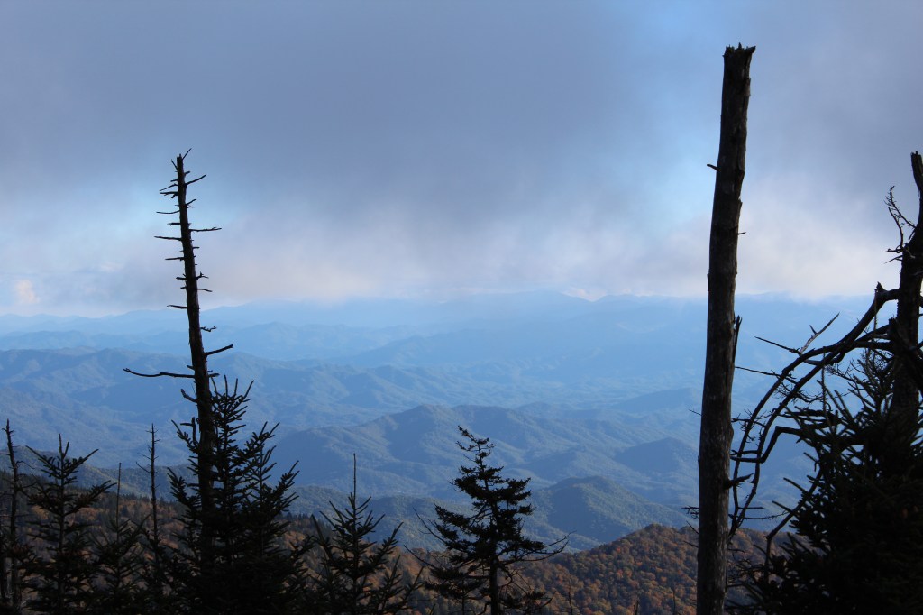 Continuing upward in elevation, I soon noticed that autumn had definitely arrived here. I took the next group o’ photos along the drive up to the Clingmans Dome overlook: