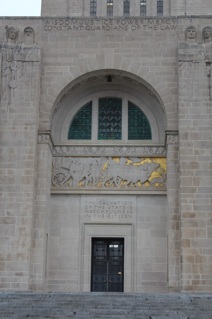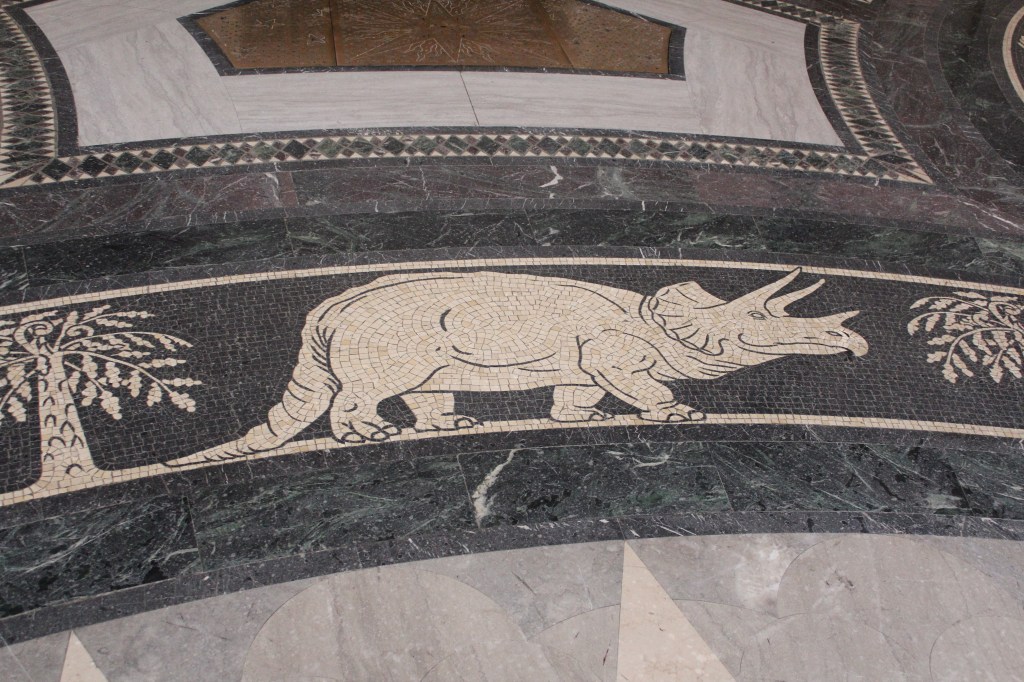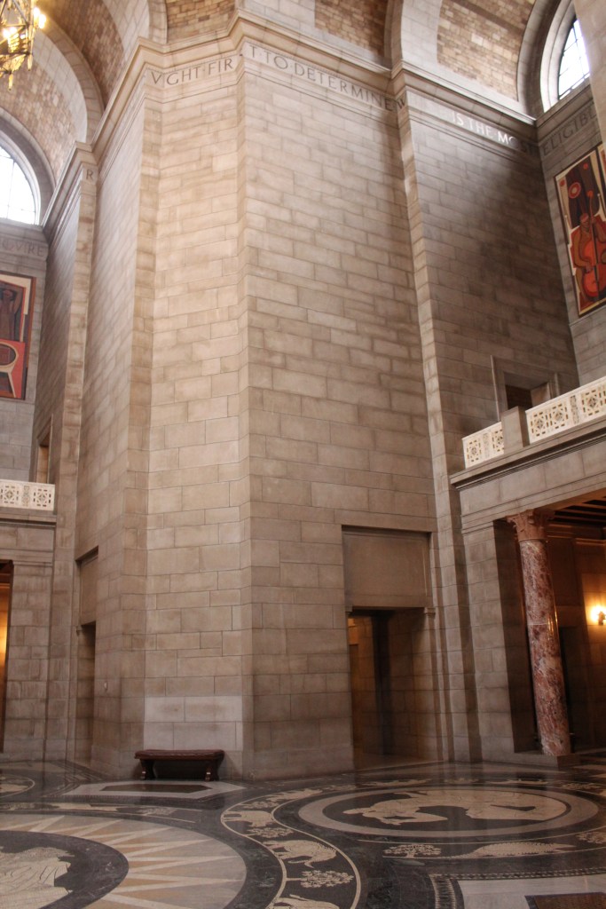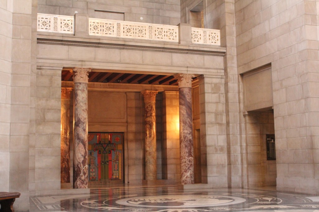 At the center of the building is the rotunda, the showpiece of the capitol. It features a series of tile mosaics, which are all tied together by a ‘banner’ which contains depictions of animals that are (or once could be) found in Nebraska. Take a gander: