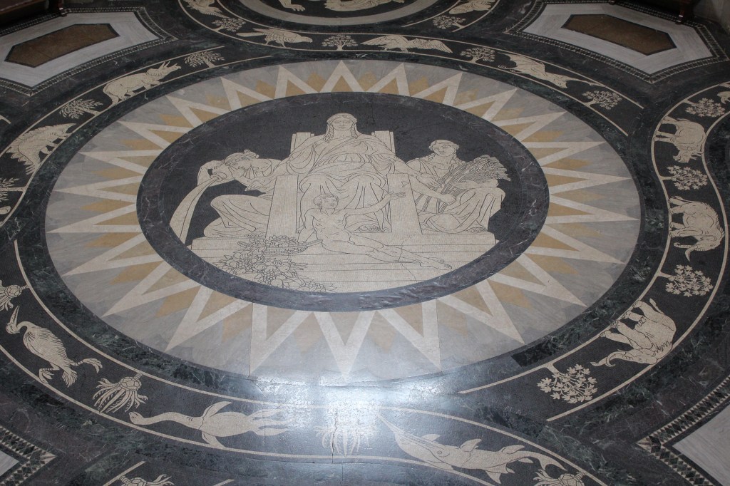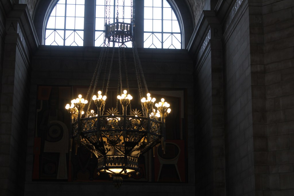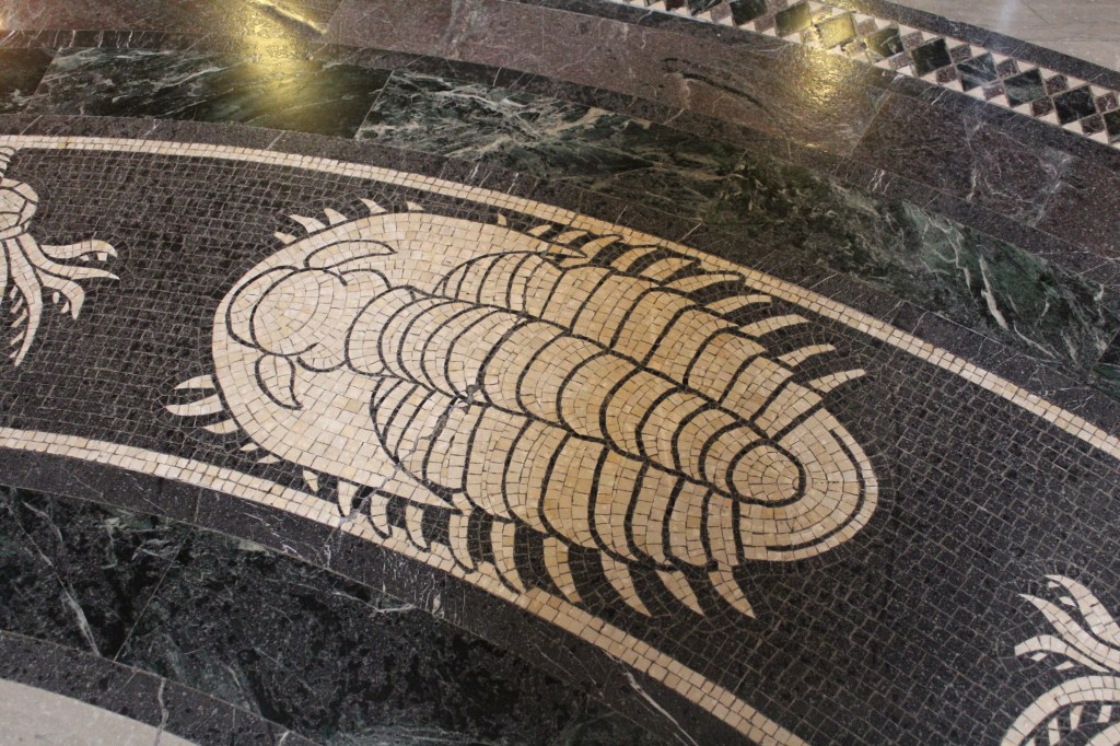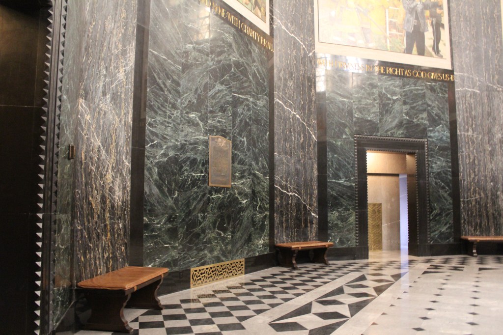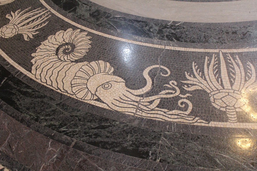 At the center of the building is the rotunda, the showpiece of the capitol. It features a series of tile mosaics, which are all tied together by a ‘banner’ which contains depictions of animals that are (or once could be) found in Nebraska. Take a gander: