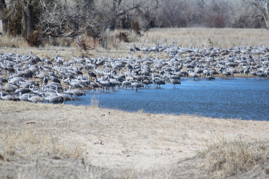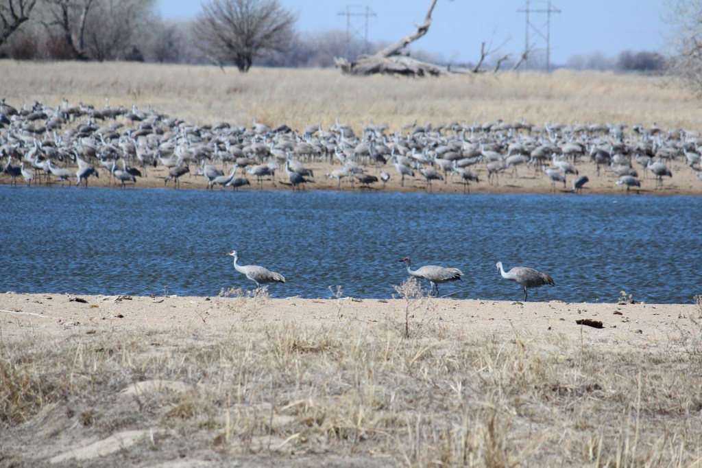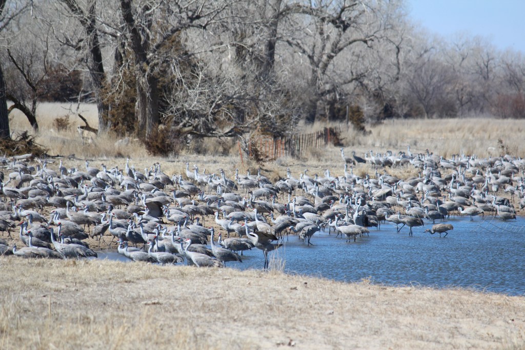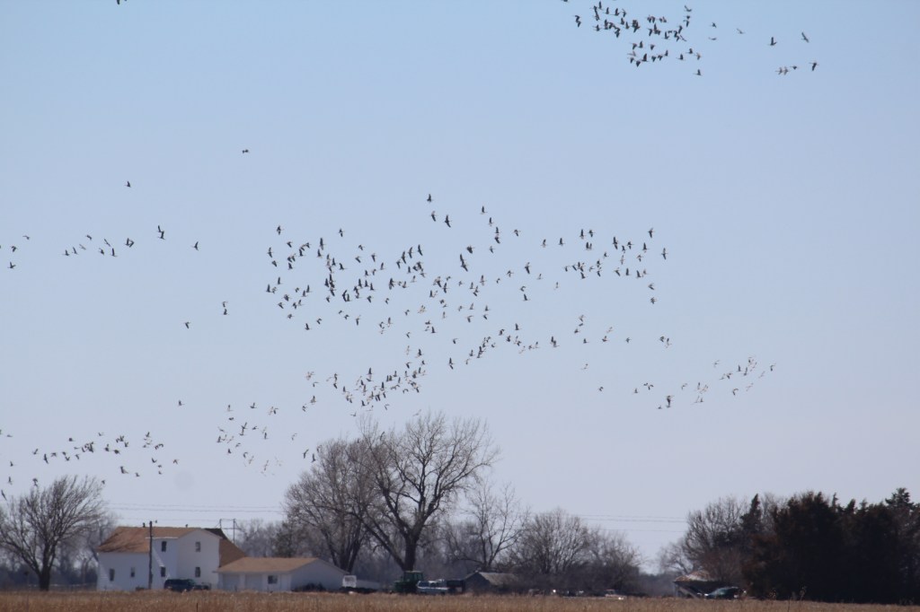 At the beginning of this trip, I mentioned that Nebraska has fewer tourist visits than any other state. So, as I was driving along the farm roads looking for/at cranes, it occurred to me that many of my readers may have no idea what Nebraska looks like. People who have driven across the state on Interstate 80 will tell you it’s completely flat, and there are no trees except right along the river. A few days from now, you will see that’s not true. But it is true of the part of the state where I grew up. In fact, the state’s name was derived for the natives’ name for the Platte River: Nebrathka, – which means “flat water”. This is an accurate name for the river, which many folks describe as “a mile wide and an inch deep”. With this in mind, let’s start with a pic of the Platte River: