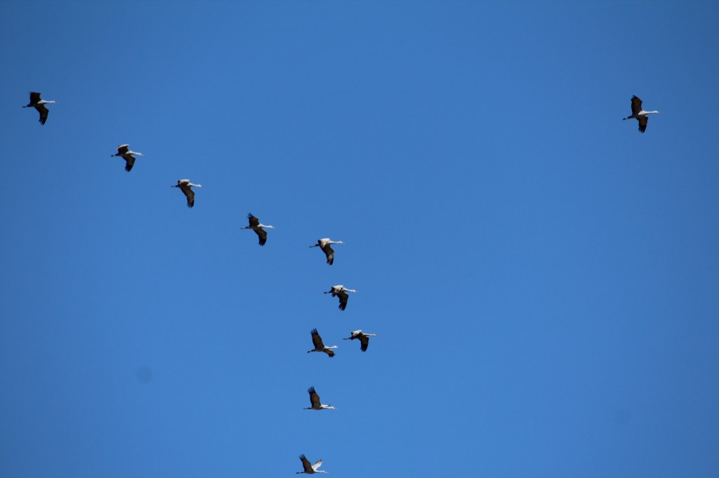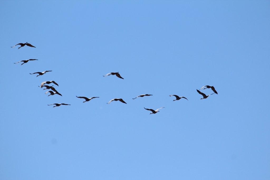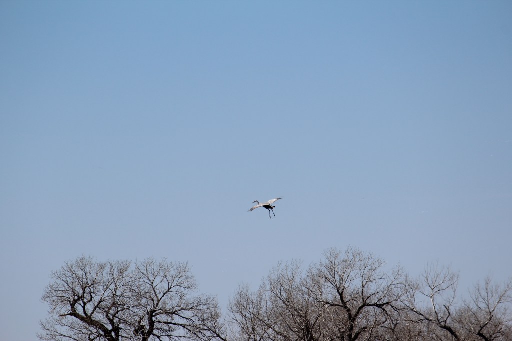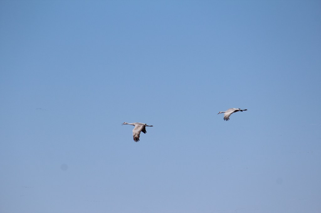 So it was that I moved on, further east along the river. It wasn’t far at all before I found myself at the Rowe Sanctuary. There were plenty of cranes flying low overhead, but the ones on the ground or in the river were all too far away to get good pictures. Thus I give the following shots of airborne cranes: