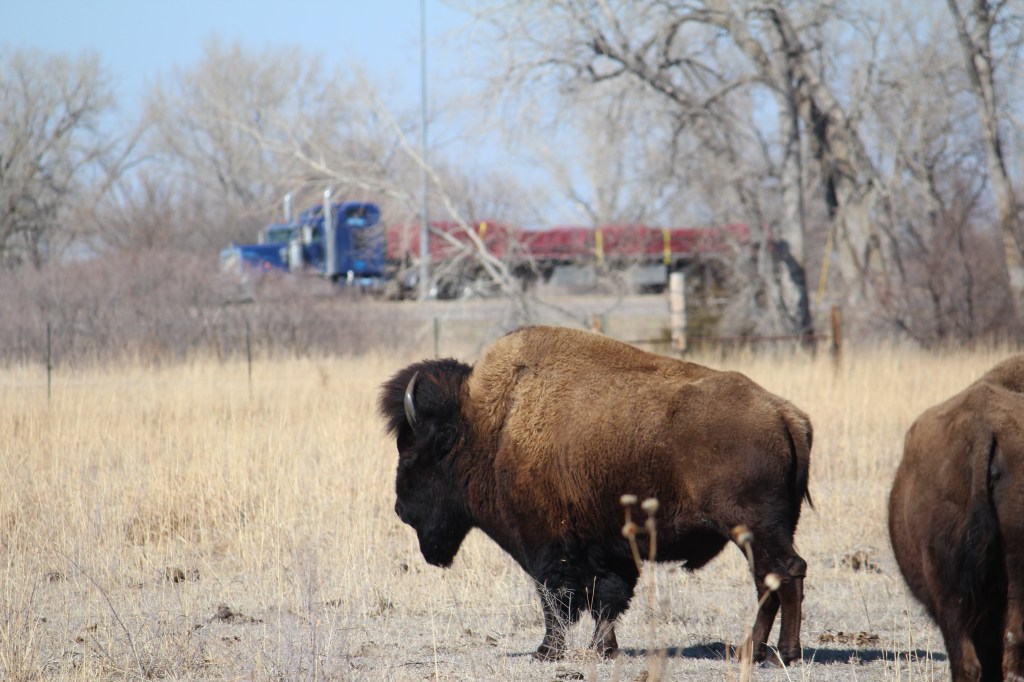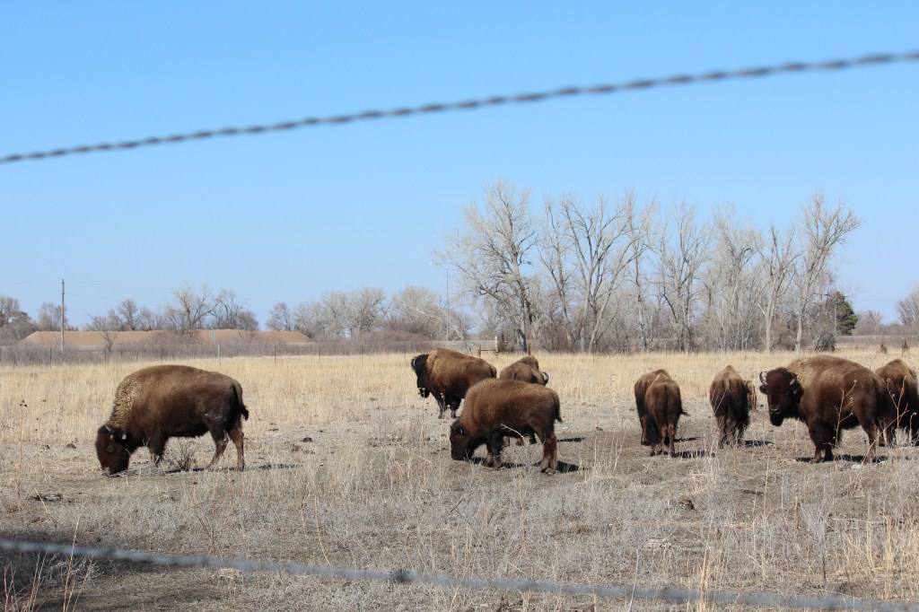 I kep’ driving slowly alongside the river for another few hours. I saw many more cranes, but couldn’t get as close as I had to that first flock this morning, so I didn’t get any more crane pics. Eventually I crossed the river and ended up at the Crane Trust Nature & Visitor Center, which was in the process of closing by the time I got there. But their bison didn’t care that it was closing time…