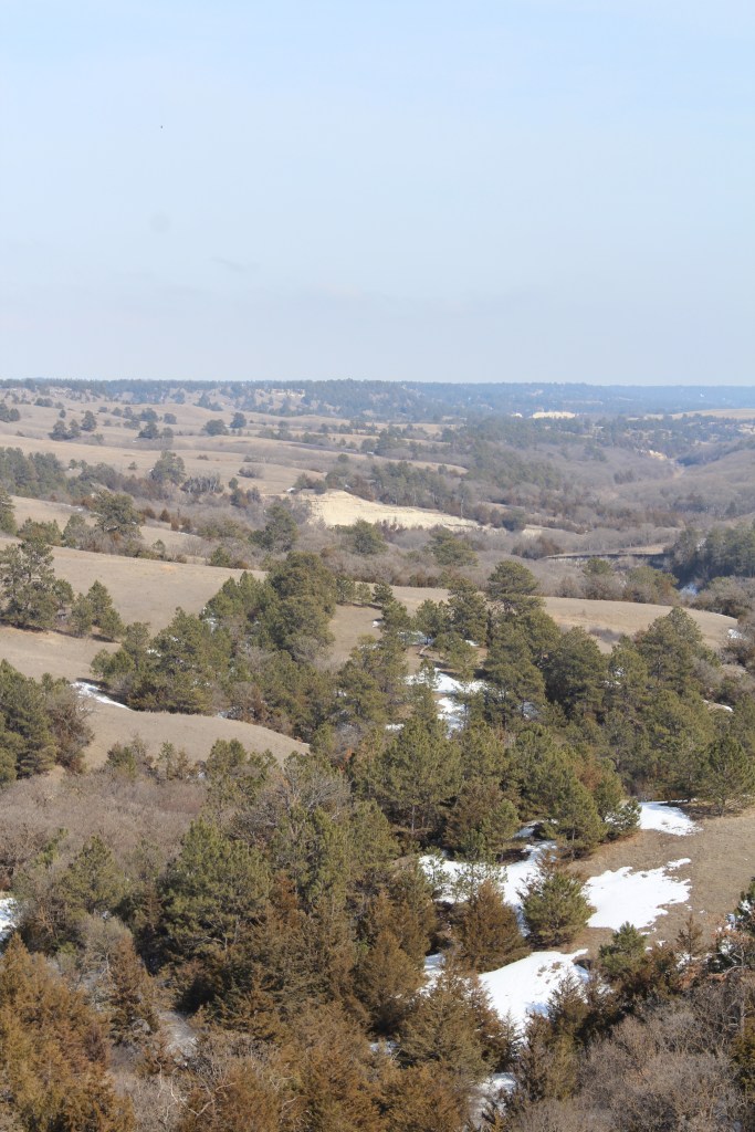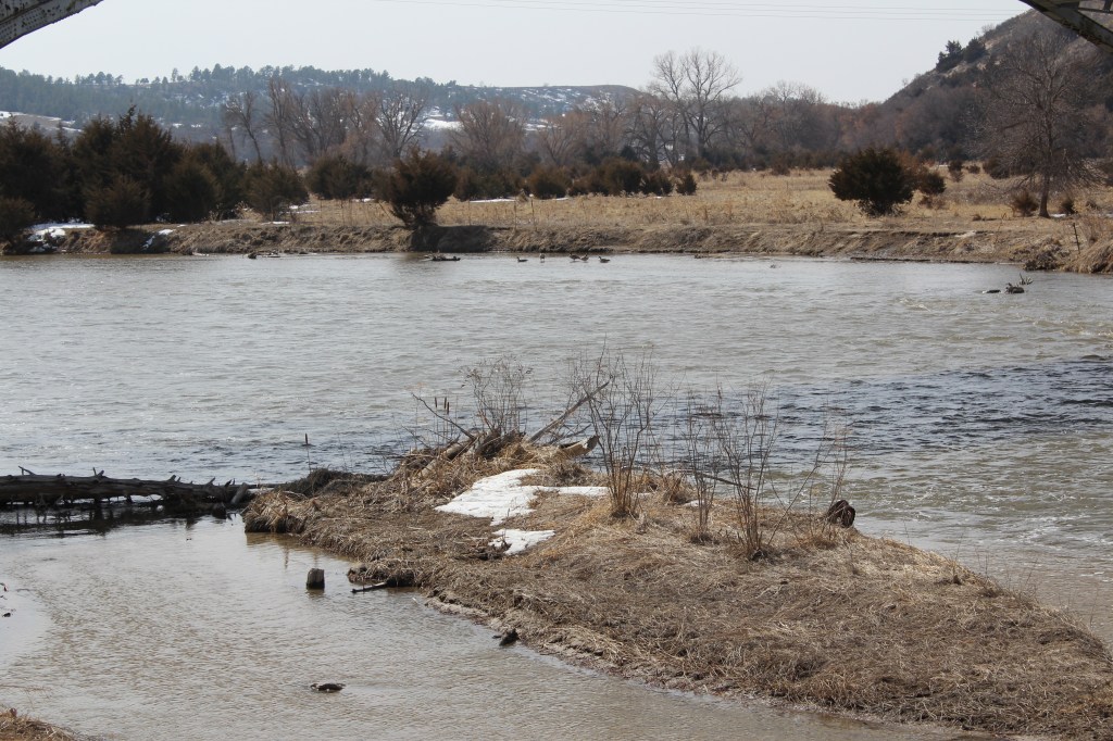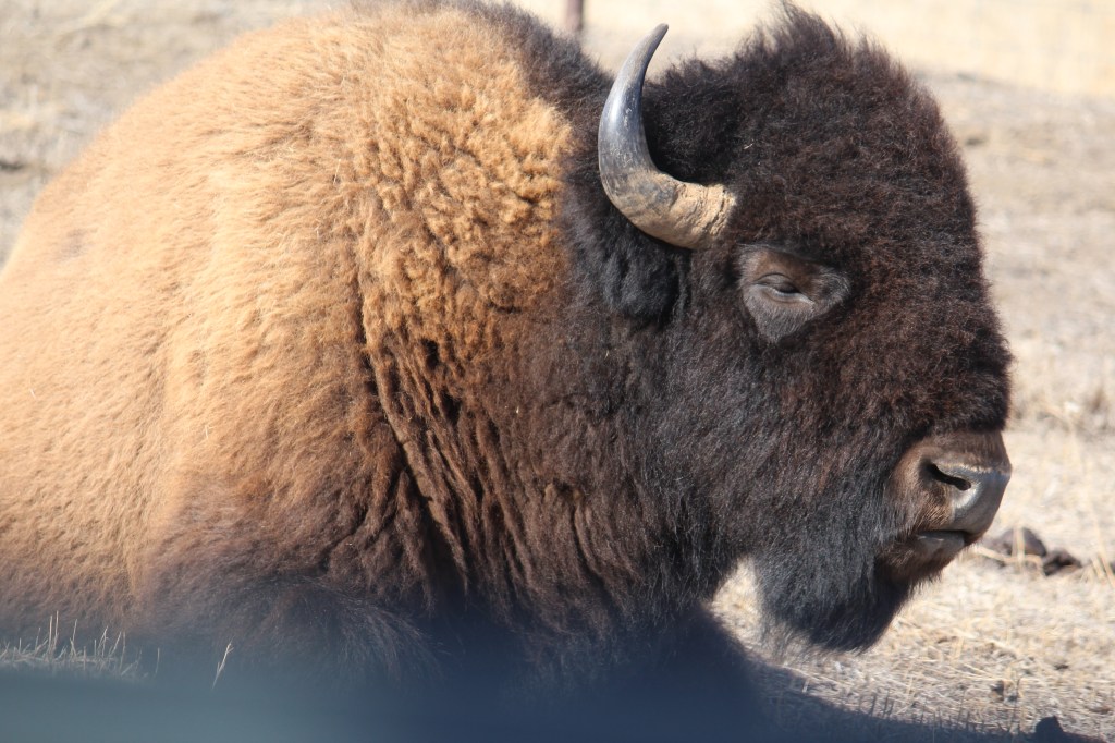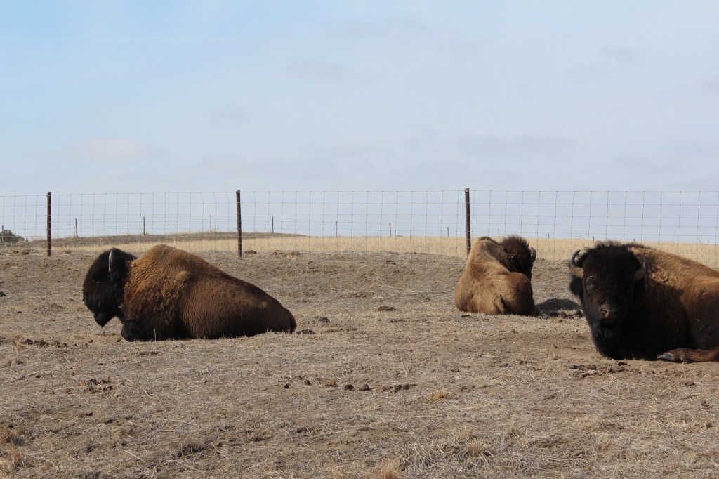 Next up on the agenda was Smith Falls. I’ve seen photos of this one, so I know it will be worthwhile. I headed east out of Valentine on state highway 12, eventually turning right onto a twisting gravel road that leads down to Smith Falls State Park. I parked at the Park, got out of the car and started walking. I was soon greeted by barricades, and by signs saying that the falls and all trails in the park are closed for construction until May! Well, that’s what you get for not checking the park’s web site before you go. Also, there goes another 36 minutes of wasted driving time. So, with tears in my eyes and fleas in my crotch, I navigated back up the twisting gravel road and west on highway 12. In just a few minutes, I had arrived at my last stop of the day (which I had intentionally driven past on the way to Smith Falls). This was the Fort Niobrara Scenic Overlook, which is part of the Fort Niobrara National Wildlife Refuge. And what sort of wildlife might one expect to see in Nebraska? These fellers, of course: