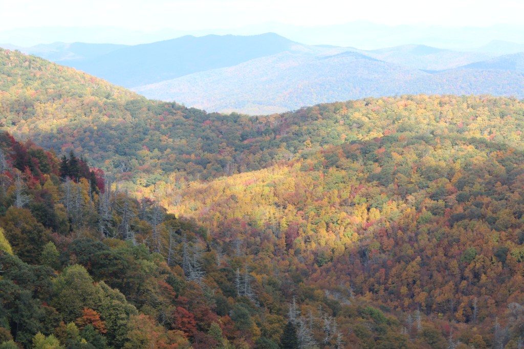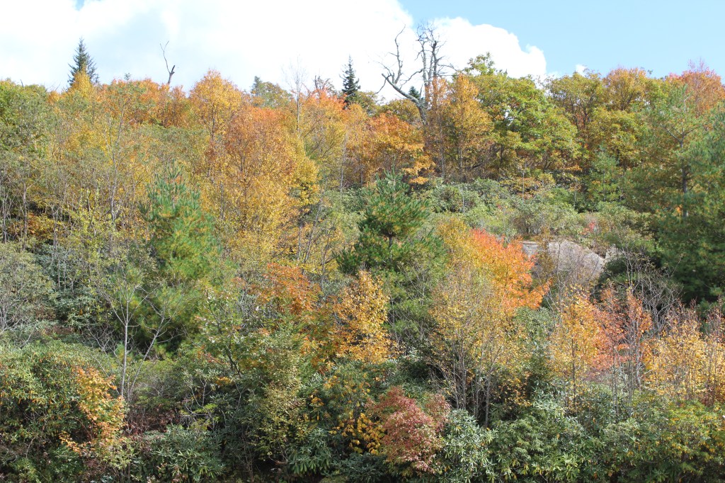 Greetings and possibly salutations! (I’m not exactly sure what salutations are, so I don’t know whether they are appropriate at this stage of our relationship.) Welcome to this week’s ThrowBack Thursday! This week’s episode is a hodgepodge of photos from three day trips. Let us eat lettuce start things off with fall foliage along the Blue Ridge Parkway in October 2016. I believe I started at Devils Courthouse and slowly oozed eastward. That would mean this first batch of pics is from just east of the junction of the Blue Ridge Parkway and North Carolina state highway 215 (between the towns of Canton and Rosman):