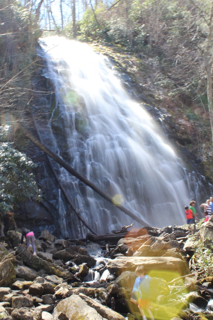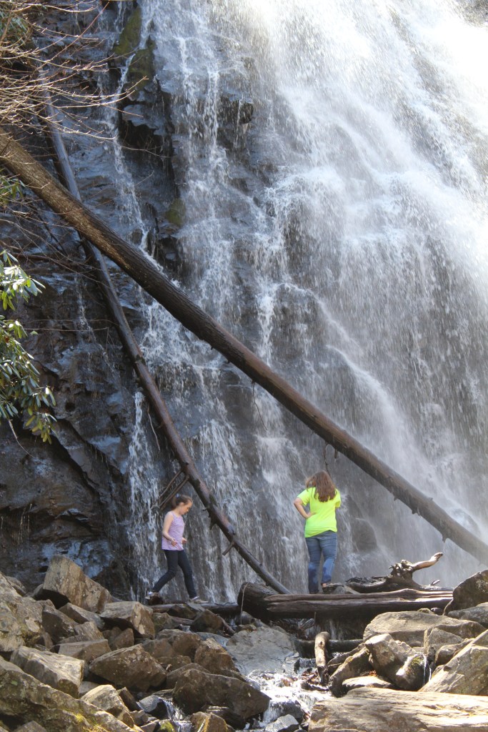 Our final stop this week is Crabtree Falls, which I visited with two nieces in tow in April 2017. The trailhead for this waterfall is on the Blue Ridge Parkway, about midway between Mount Mitchell and the Museum of North Carolina Minerals. NOTE: There is also a Crabtree Falls in Virginia, which is also quite near the Blue Ridge Parkway. The photos below are from the Crabtree Falls in North Carolina. I have not yet been to the Crabtree Falls in Virginia. It’s on my list, though.