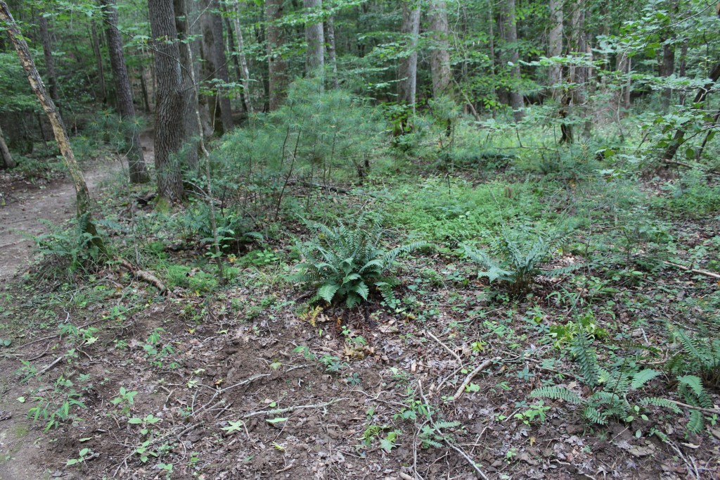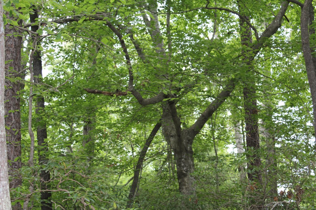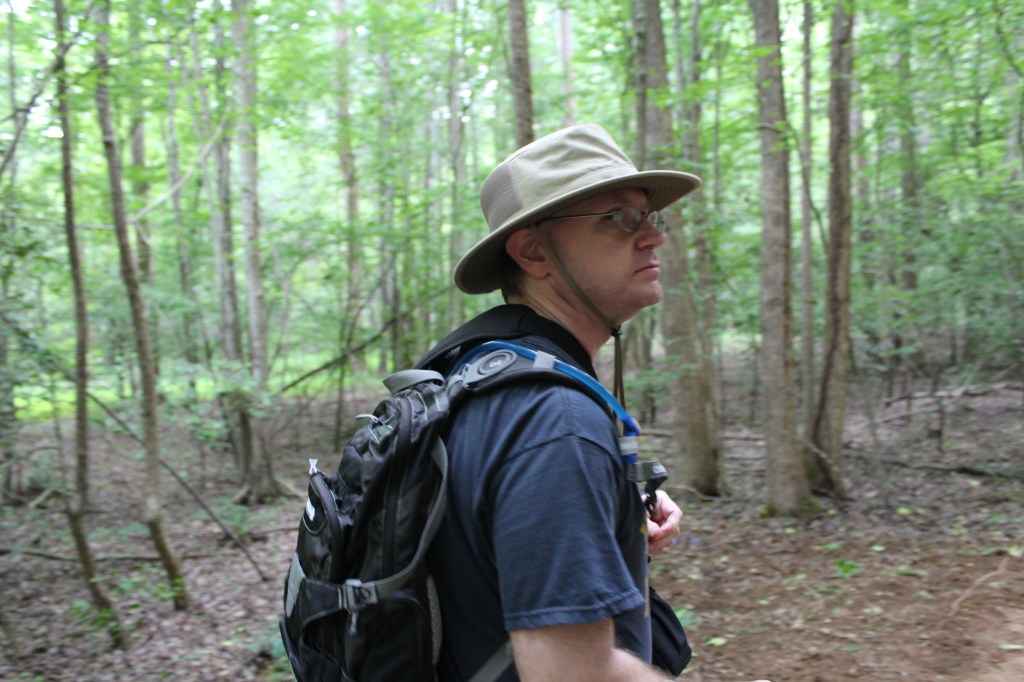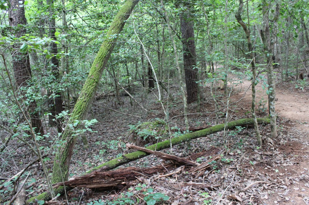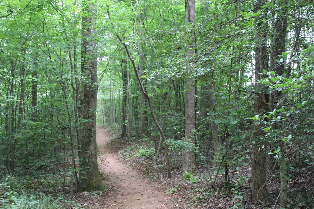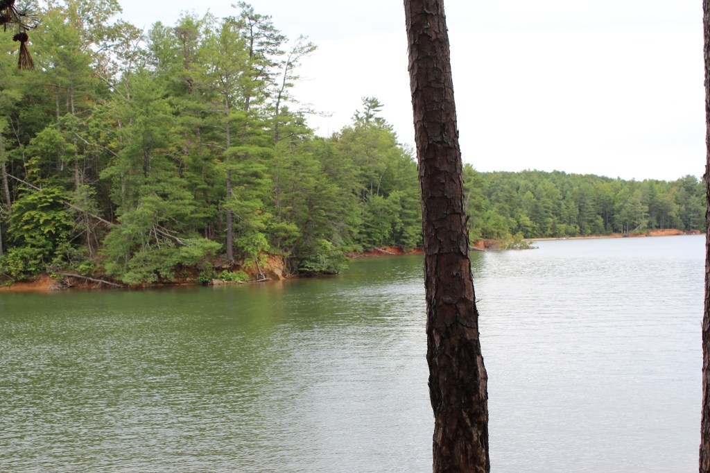 On 25 June 2017, I and a niece set out for a hike up Table Rock Mountain. A few days earlier, I had used one of the many web-based map services to get directions to the trailhead, then wrote down the directions. These hand-written directions turned out to be rubbish. They led us to a gate, which hosted a plethora of signs, each of which clearly conveyed the message that this was not the right way. I don’t remember for certain, but it seems to me we consulted a GPS app or two, but they also pointed us to the gated road. We could see Table Rock Mountain nearby; in fact, it almost seemed as though we could have reached out and licked it. So, I figured I could just circle the mountain until we came across a sign or a promising road. Somehow, on those winding mountain roads, I failed. We did not find the trailhead for Table Rock Mountain that day, but we did eventually happen upon a lakeside trail, so we took a walk along the lake. There were no signs indicating which lake this was, or even giving the trail a name, and I doubt I could find it again on my own. Thus, I call this trail The Unknown Hike. Looking at a map of the area, I can say now that it was almost certainly Lake James.