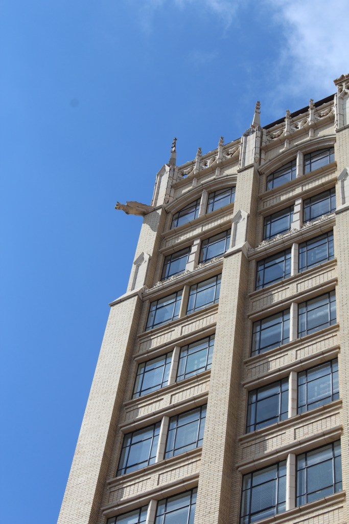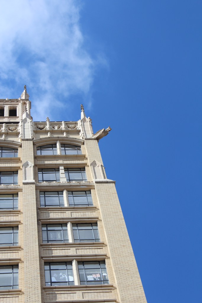 And now, folks, we come to what may well be the highlight of our tour. The skyscraper known as the Jackson Building was completed in 1924, on a lot that measures 27 feet by 60 feet. So even if you’re not a fan of its Neo Gothic style, you will at least walk away with the satisfaction of having seen the world’s skinniest skyscraper:
