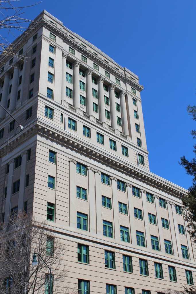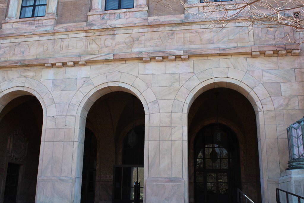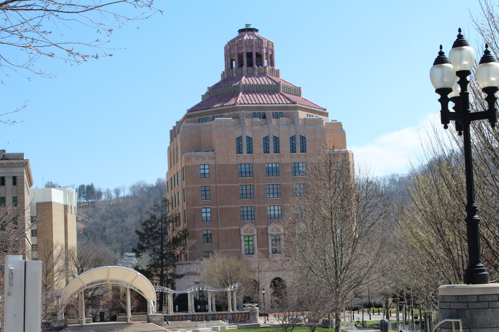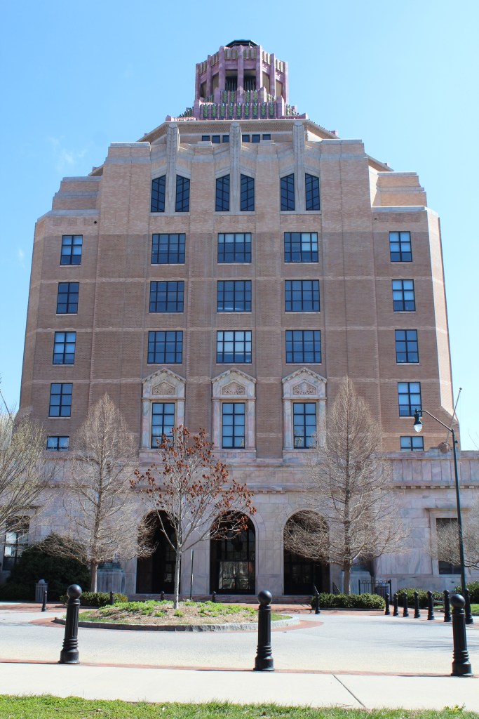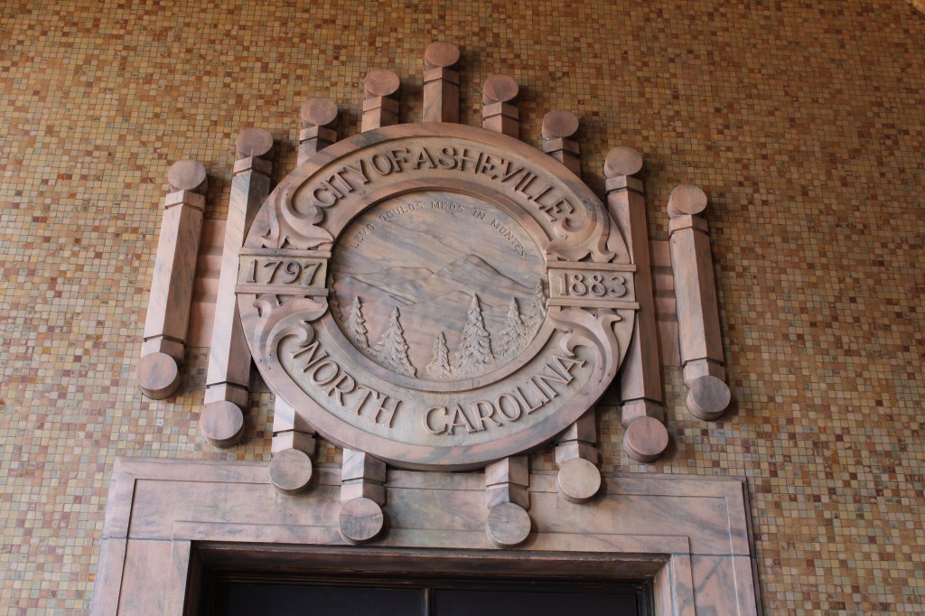 Just down the hill from Pack Square are the county court house and the city hall. These are two very different buildings, but both are worth lookin’ at. Unfortunately, I was there on a weekend, so both buildings were closed. From what I could see through the glass doors of City Hall, it looked like the inside may be just as interesting as the outside. Well, then! Let’s take a look at that outside, shall we?