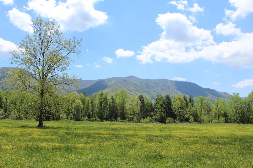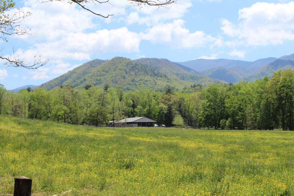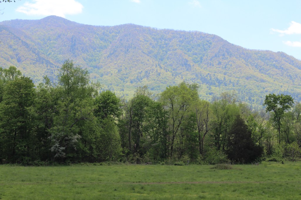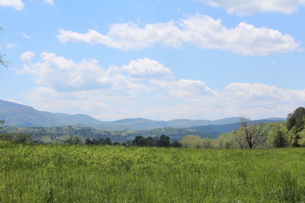 I spent the next day at Cades Cove. For those of you who are unfamiliar with GSMNP, Cades Cove is a large flat valley surrounded by mountains. Much of it was farmed prior to the formation of the national park; now it’s mostly wide-open meadows. For my readers from Colorado specifically, Cades Cove is basically the Tennessee version of South Park. Take a look: