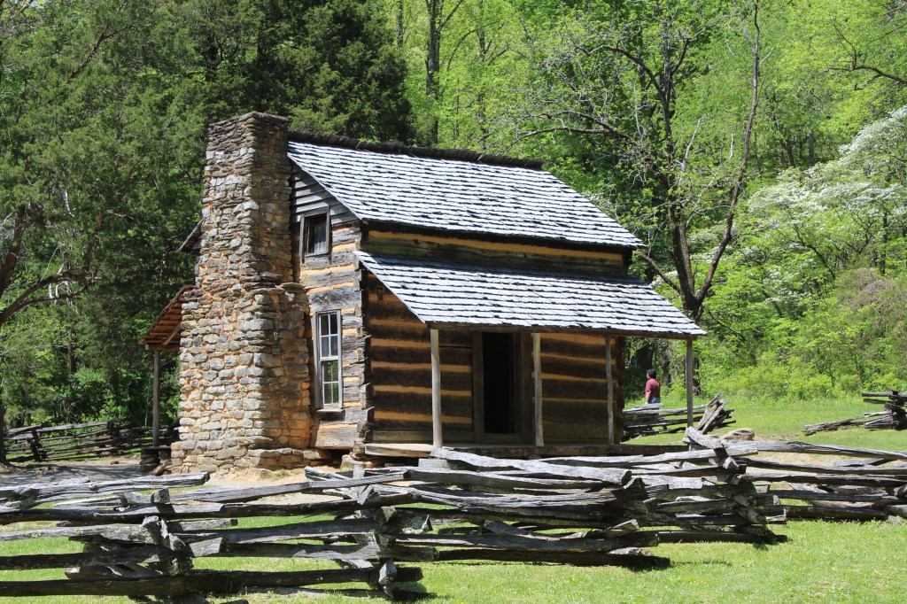 Since Cades Cove was mostly farmland before the national park came into being, there were scattered houses, barns, etc. Many of these are maintained for their historic value and are open to the public. This includes a cabin that is believed to have been built in the early 1820’s by John Oliver to house himself and his wife, Lucretia. Is it just me, or does “Lucretia” sound like a good brand name for a laxative? Anyway, the Oliver family lived in this cabin for over a century. Here’s a few pics of it: