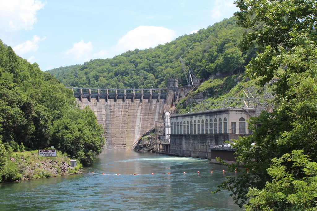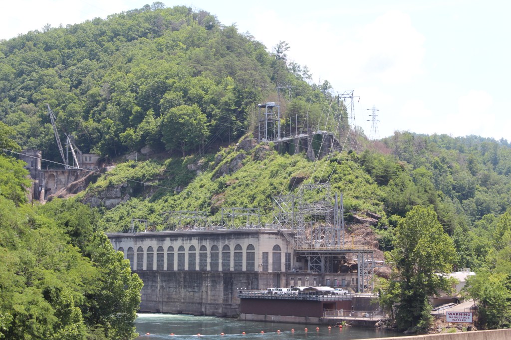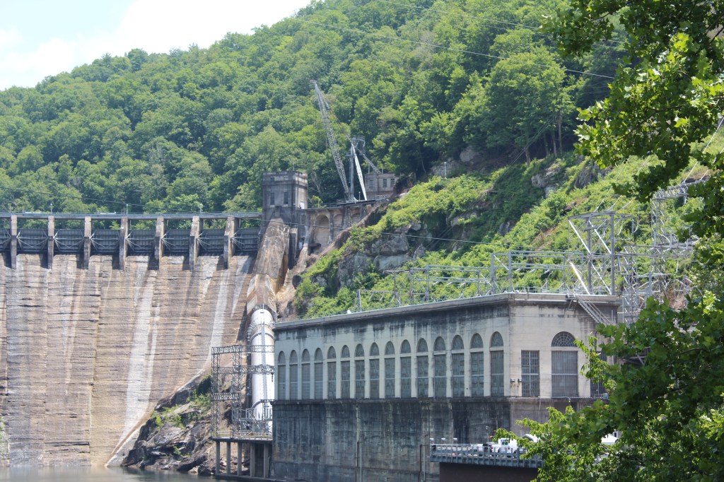 Yeah. I think that works. We begin in June 2019. I was visiting Cherokee, NC again, and decided to go into the Great Smoky Mountains National Park Visitor Center. I had never actually been inside the visitor center, so I thought it would be nice to drop in and learn a bit more about the park. But instead, I ran into some information about something just outside the park – TVA’s Fontana Dam, the highest dam east of the Rocky Mountains. So, with only a glance at a map and a belief that I could not possibly miss such a large target, I left the national park and started roaming towards the southwest. And missed my target. I ended up 25 miles past Fontana Dam, where I happily happened across Cheoah Dam. This lovely gem of a hydroelectric dam was celebrating its 100th birthday! Let’s have a look at the festivities: