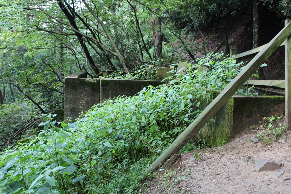 In August of 2019, I decided to take a break from the southern summer heat. So, I headed up in elevation to Boone, North Carolina for a weekend. I planned on doing one hike on Saturday and one on Sunday. Saturday was Glen Burney Trail, inside the city limits of Blowing Rock, North Carolina. The parking area (at least the one I used) is at the top of the trail. The trail starts off pretty level, maybe a slight downhill slant, until you find yourself at the ruins of a sewer plant that was abandoned in 1929. Here’s a few quick pics o’ that: