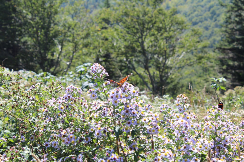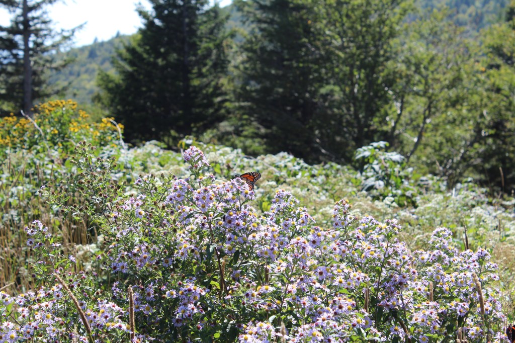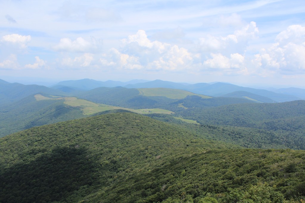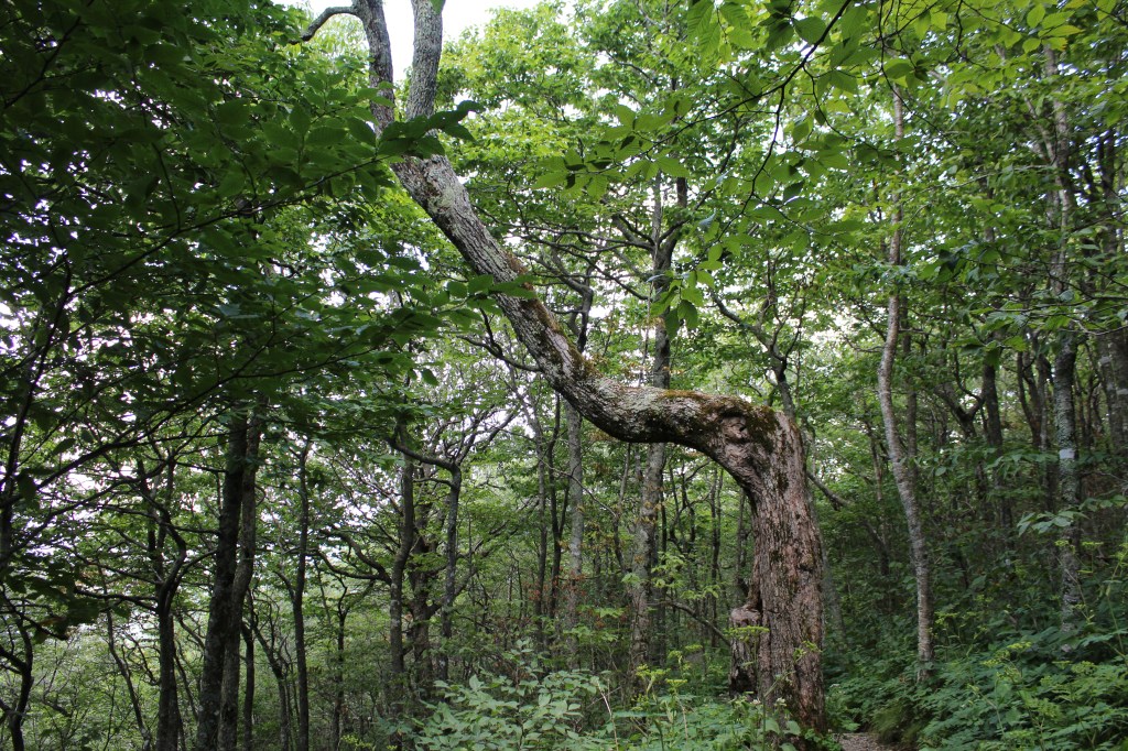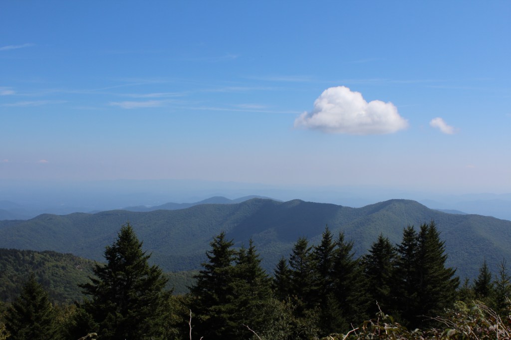 The next day’s hike was much more enjoyable. I drove through the wonderfully named town of Meat Camp to reach Elk Knob State Park, where I hiked the Summit Trail. Despite its name, Summit Trail is a much easier hike than Glen Burney. Summit Trail had reasonable grades and good footing throughout, and no garbage. I might even go so far as to say that it was one of the more pristine hikes I’ve done. As a side note, the famous frontiersman Daniel Boone used to camp in this area during the autumn. Here, he and some fellow mountain folk hunted deer and/or elk until they accumulated enough meat to last them through the winter. Hence the name, Meat Camp. Now, enjoy some of the scenery of North Carolina’s Elk Knob State Park: